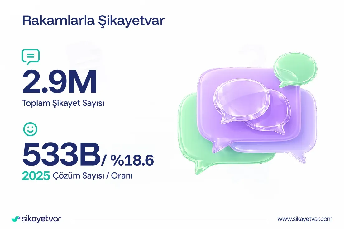 Çözüm platformu Şikayetvar, 2025 yılına ait dikkat çeken verilerini kamuoyuyla paylaştı. Aylık 20 milyonu aşan ziyaretçi trafiğine ulaşan platformda yıl boyunca toplam 2 milyon 868 bin 914 şikayet kayda geçti. Bunların 533 bin 117’si çözüme kavuşurken, kullanıcı sayısı yüzde 11 artarak 1 milyon 359 bin 51’e yükseldi. Veriler, tüketici gündeminin ekonomik dalgalanmalar ve dijital riskler etrafında şekillendiğini ortaya koydu.