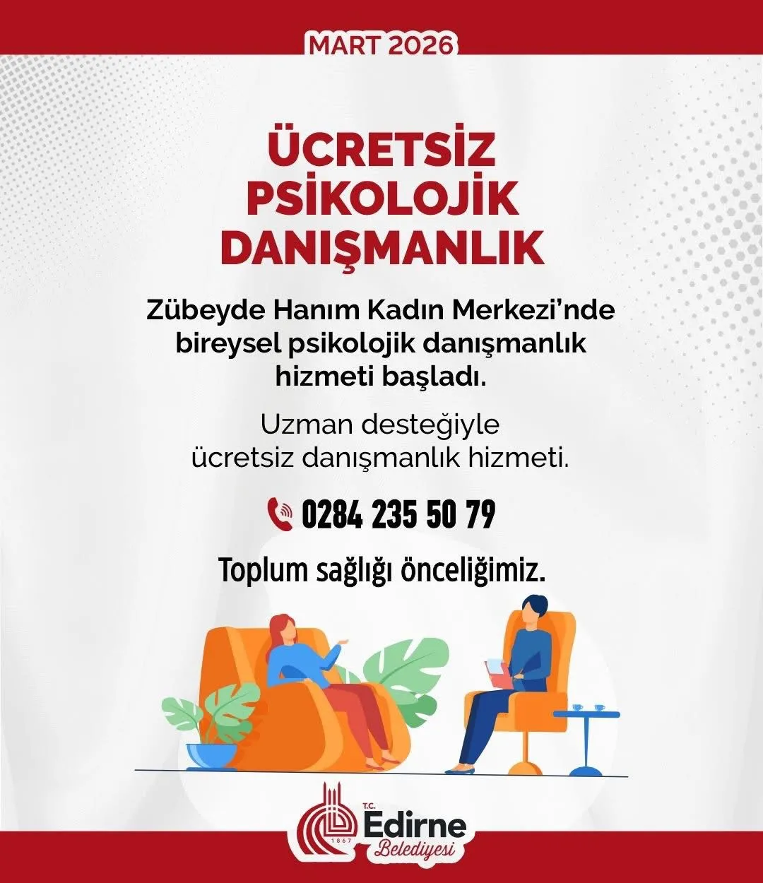 Öte yandan Zübeyde Hanım Kadın Merkezi bünyesinde başlatılan ücretsiz psikolojik danışmanlık hizmeti de vatandaşlardan yoğun ilgi görüyor. Bu hizmetle özellikle kadınların ve ailelerin psikolojik destek alabilmesi amaçlanıyor.