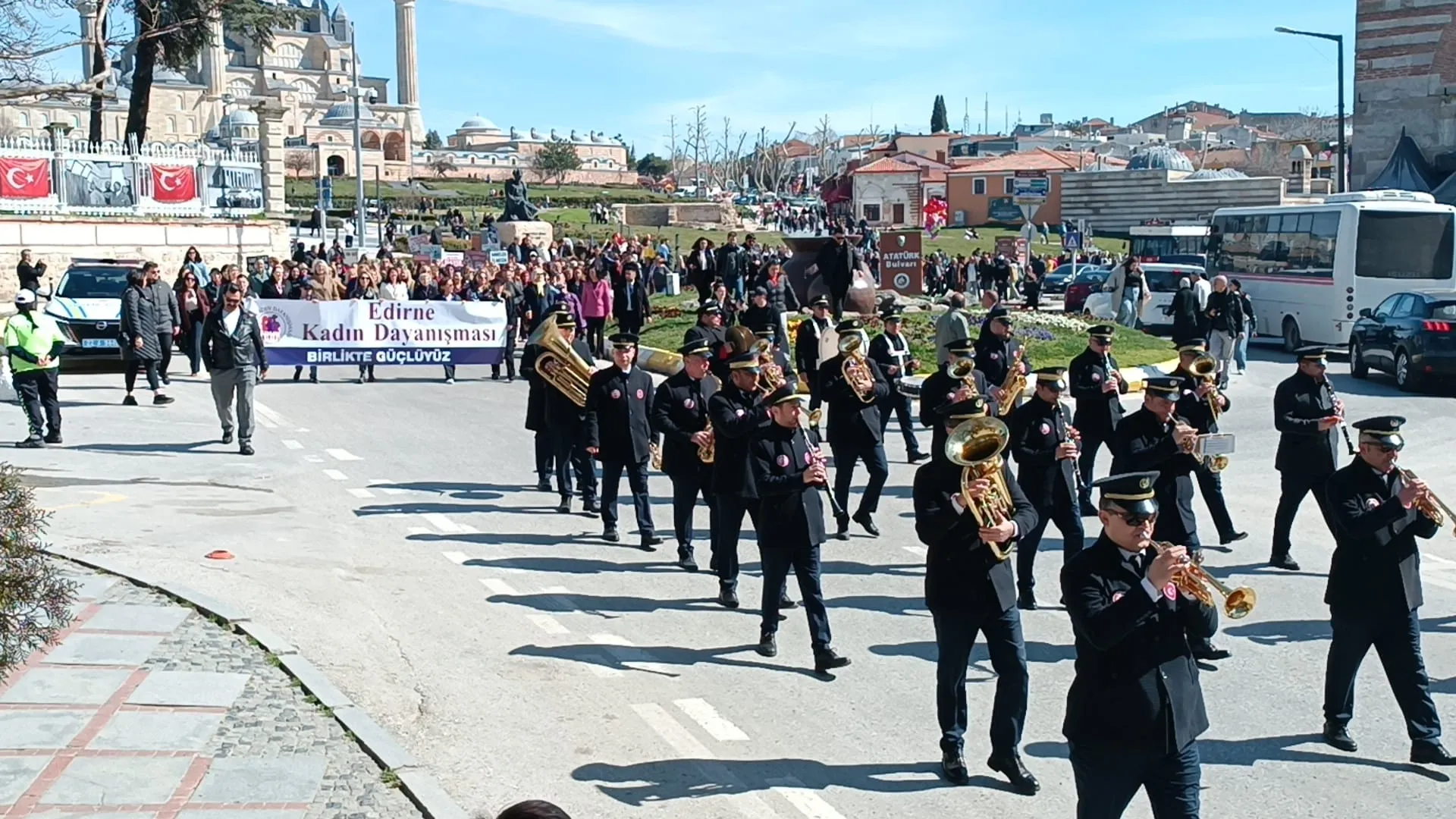 Çiçek bırakma töreninin ardından kadınlar cadde boyunca yürüyerek Atatürk Anıtı’na ulaştı. Yürüyüş boyunca kadınların taşıdığı pankartlar ve attıkları sloganlar, etkinliğe katılan vatandaşların da dikkatini çekti.