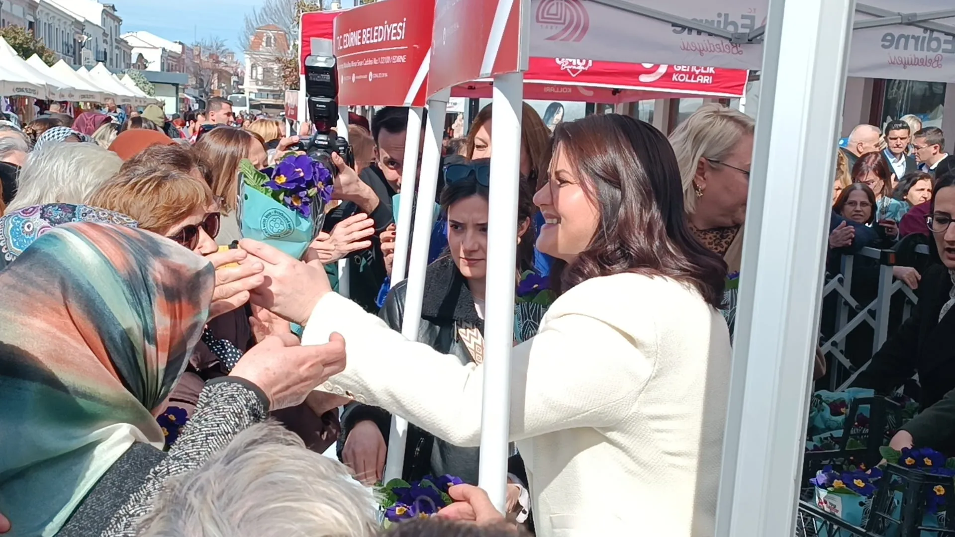 Belediye ekipleri tarafından kadınlara ve vatandaşlara çiçek dağıtılırken etkinliğe yoğun ilgi gösterildi. Çiçek dağıtımı sırasında oluşan yoğunluk nedeniyle kısa süreli bir izdiham yaşandı. Belediye görevlileri müdahale ederek kalabalığı kontrol altına aldı.