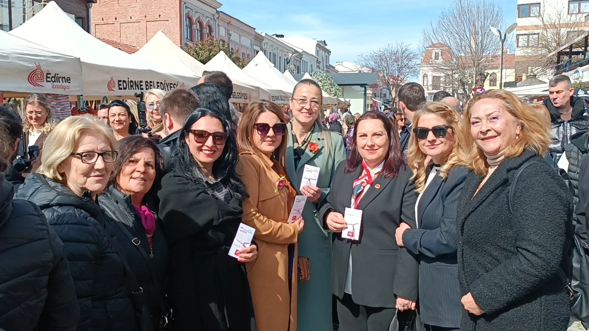 Programın devamında etkinlikler Edirne’nin en işlek noktalarından biri olan Saraçlar Caddesi’nde sürdü. Edirne Belediye Başkanı Filiz Gencan ile İl Genel Meclis Başkanı Çiğdem Gegeoğlu, burada kurulan emek pazarındaki stantları ziyaret ederek kadın üreticilerle sohbet etti.