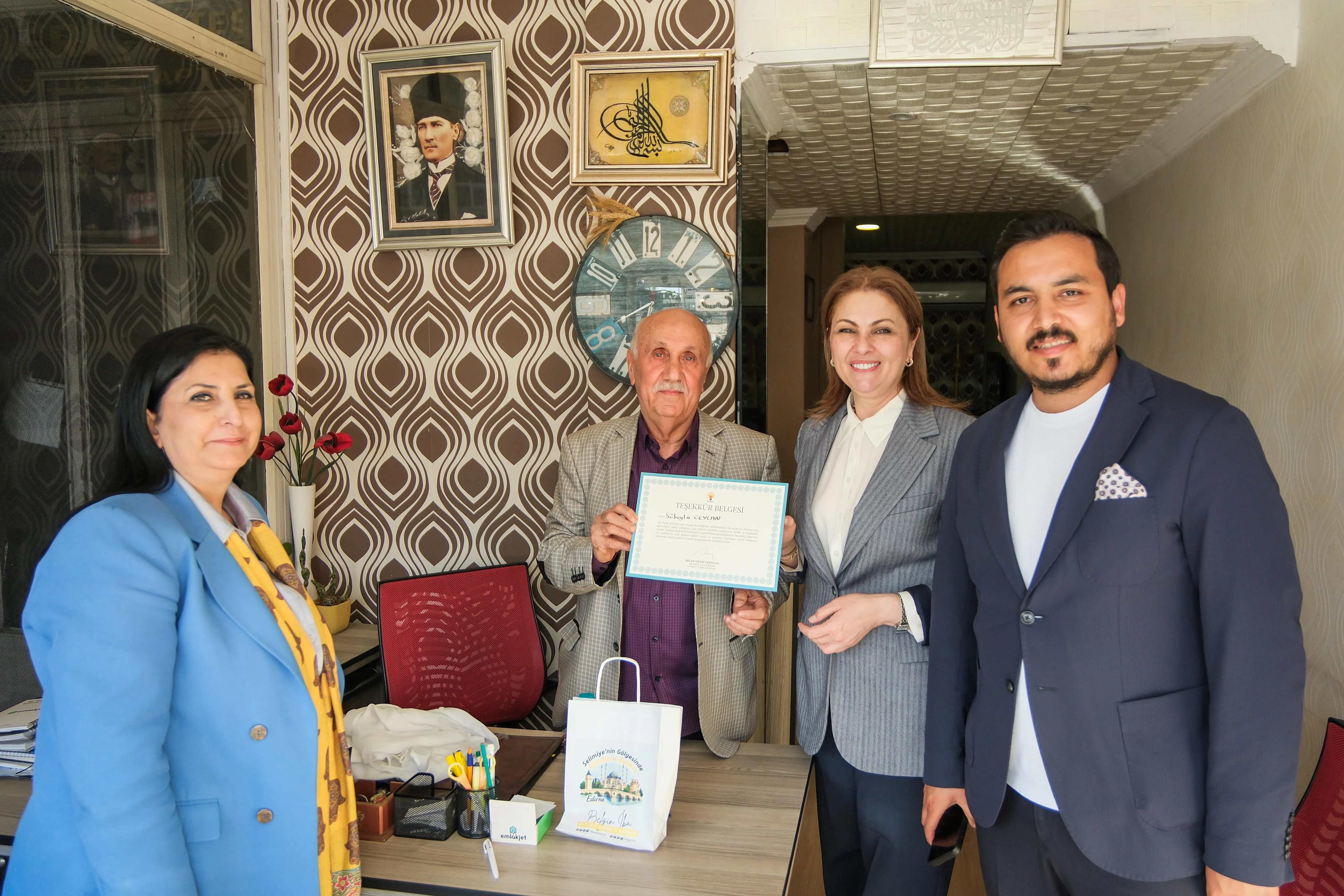AK Parti Edirne İl Başkanlığı tarafından yürütülen saha çalışmaları kapsamında, Cumhurbaşkanı Recep Tayyip Erdoğan tarafından parti üyelerine gönderilen teşekkür belgeleri birebir ziyaretlerle takdim ediliyor. İl Başkanı Belgin İba öncülüğünde sürdürülen çalışmalar, teşkilat ile bağları güçlendirmeyi amaçlıyor.