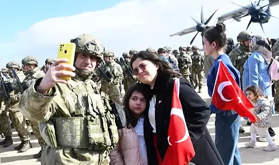 'GURURLUYUZ ONURLUYUZ'Tatbikata katılacak eşini, kızıyla birlikte uğurlamaya gelen Yasemin Duygu Bolat, "Bugün burada kızımla hem eşimi hem de görev arkadaşlarını uğurlamak için bulunuyoruz. Kısa bir süre de olsa ayrı kalacak olmanın bir hüznü var. Bunun yanında çok güçlü bir duygu da hissediyorum. Çünkü eşim hem ülkemizi hem de Türk Silahlı Kuvvetleri'ni uluslararası bir tatbikatta temsil edecek. Bu, her ailenin yaşayamayacağı bir onur. Eşimin birliğini tatbikat için çok iyi şekilde hazırlandığını yakınen biliyorum. Çok büyük bir ciddiyetle çalıştılar ve eğitimlerini tamamladılar. Emeklerinin karşılığını alacaklarına, tatbikatta Türk askerini bilgi, disiplin ve kararlılığını en güzel şekilde temsil edeceklerine yürekten inanıyorum. Bizler için vatan sevgisi her şeyin üstündedir. Ayrılıklar geçicidir ama ülkeye hizmet etmenin verdiği manevi güç kalıcıdır. Rabb’im hepsinin yanında olsun" dedi.