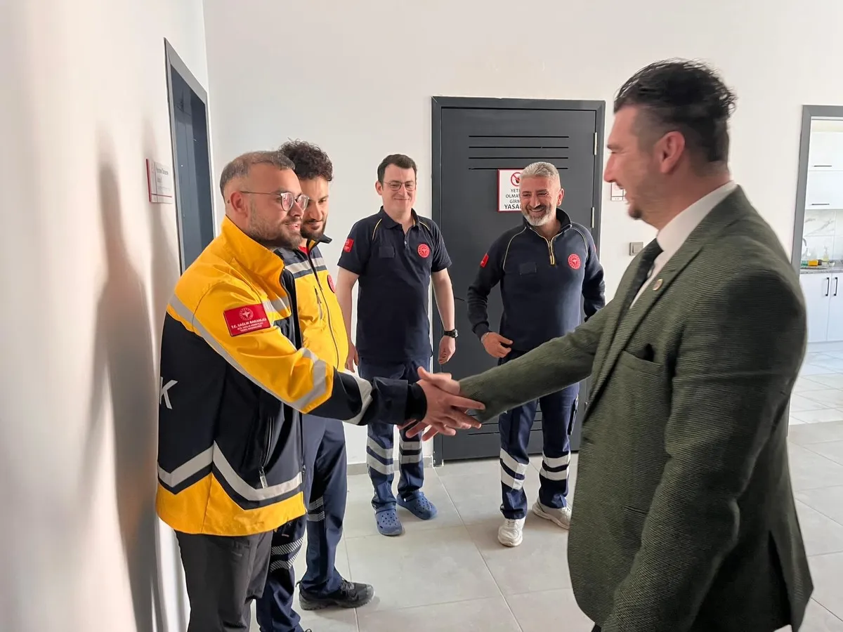 Başkan Fırat Yayla, incelemelerinin ardından 3 No’lu Acil Sağlık Hizmetleri İstasyonu’nu ziyaret etti. Ziyarette fedakârca görev yapan sağlık çalışanlarıyla bir araya gelen Yayla, sağlık emekçilerinin çalışmalarına teşekkür etti.