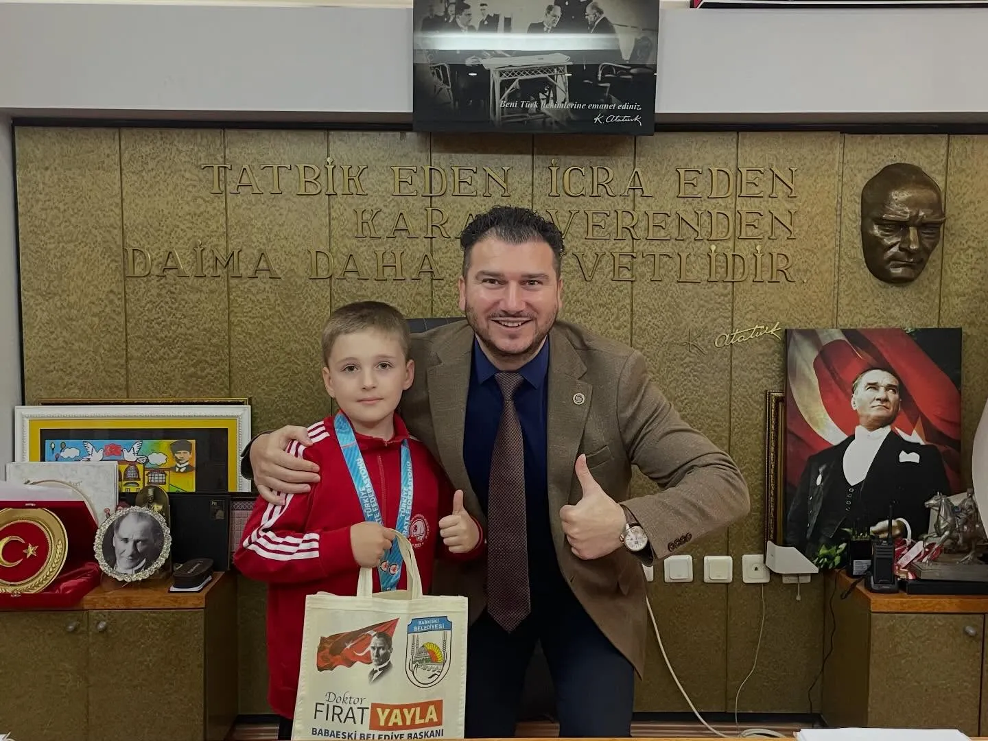 Babaeski Belediye Başkanı Fırat Yayla, Türkiye Minikler Karate Şampiyonası’nda derece elde eden genç sporcuları belediyede ağırladı. Başarılarıyla ilçenin gururu olan sporcular, hem belediye yönetimi hem de vatandaşlar tarafından takdirle karşılandı.