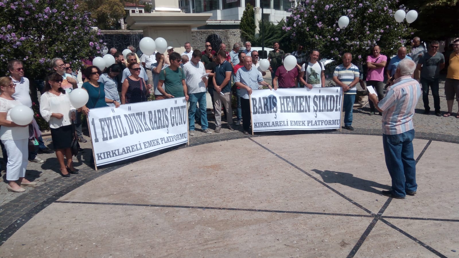 1 Eylül Dünya Barış Günü etkinliğinin açılış konuşmasını emekli sen şube başkanı Hüseyin Budak yaparken, "Barış" adlı şiiri Eğitim Sen Üyesi öğretmen Bahar Deniz Tanır okudu. Daha sonra yapılan basın açıklamasının ardından ise barışı simgeleyen beyaz balonlar gökyüzüne bırakıldı.