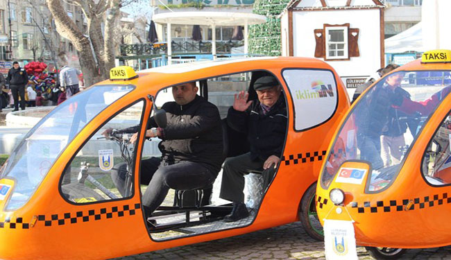 Avrupa Birliği tarafından finanse edilen “Bisikletlerimizle İklim Değişikliğine Karşı Mücadele Ediyoruz” projesi kapsamında belirli güzergahlarda ulaşım sağlayacak elektrikli bisiklet taksiler, öncelikli olarak 60 yaş ve üzeri, engelli, hamile ve çocuklu vatandaşlara hizmet verecek.