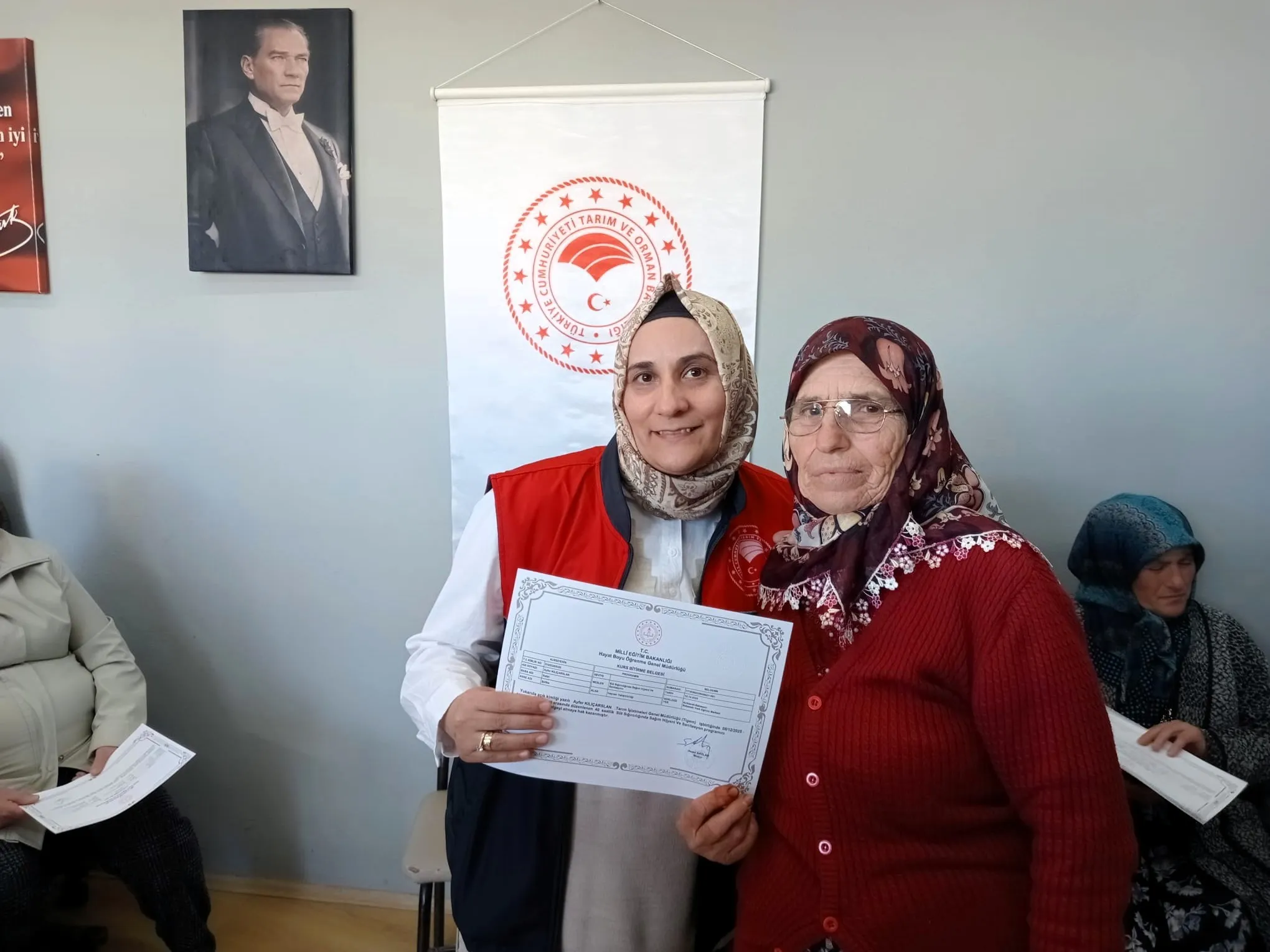Eğitimi başarıyla tamamlayan kursiyerlere, sağım hijyenini desteklemek amacıyla çeşitli ekipmanlar dağıtıldı. Bu kapsamda kursiyerlere; sağım öncesi ve sonrası daldırma kapları, sağım öncesi ve sonrası solüsyonları ile ÇMY test kapları ve ÇMY solüsyonlarından her birinden 24’er adet teslim edildi.