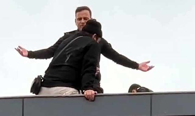 TEKİRDAĞ’ın Çorlu ilçesinde kapıcılık yaptığı 9 katlı apartmanın çatısına çıkıp intihara kalkışan H.C., Çorlu Sabahattin Ergin Polis Merkezi Amiri Başkomiser Tufan Arıkoğulları tarafından ikna edilerek indirildi.