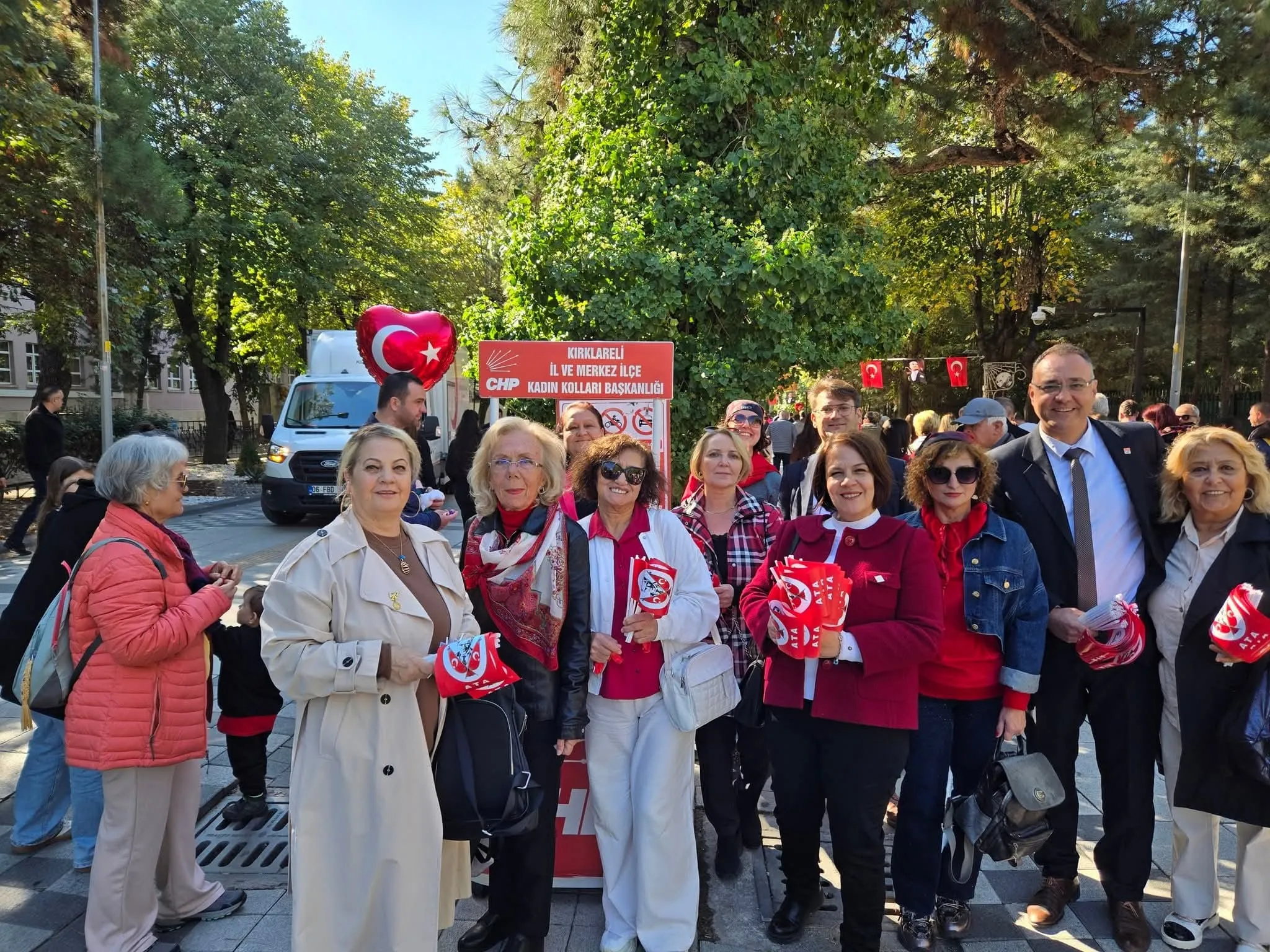 Cumhuriyet Halk Partisi (CHP) Kırklareli İl ve İlçe Kadın Kolları, Cumhuriyetimizin 102. yılı etkinlikleri kapsamında anlamlı bir kutlama gerçekleştirdi. Vilayet Meydanı’nda düzenlenen resmi törenin ardından kadın kolları üyeleri, Cumhuriyet coşkusunu halkla birlikte yaşamak için Kırklareli İstasyon Caddesi’nde özel bir etkinlik düzenledi.