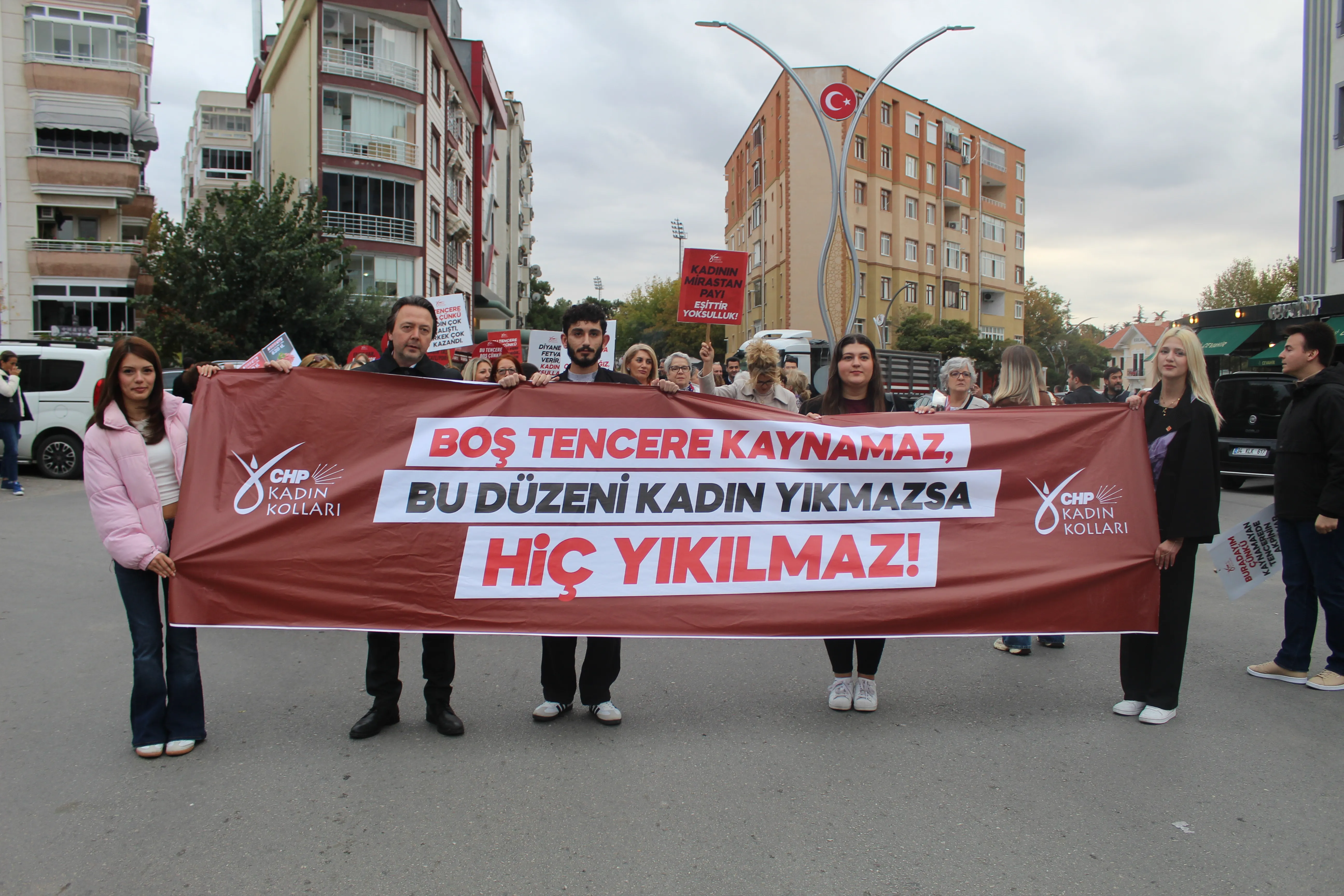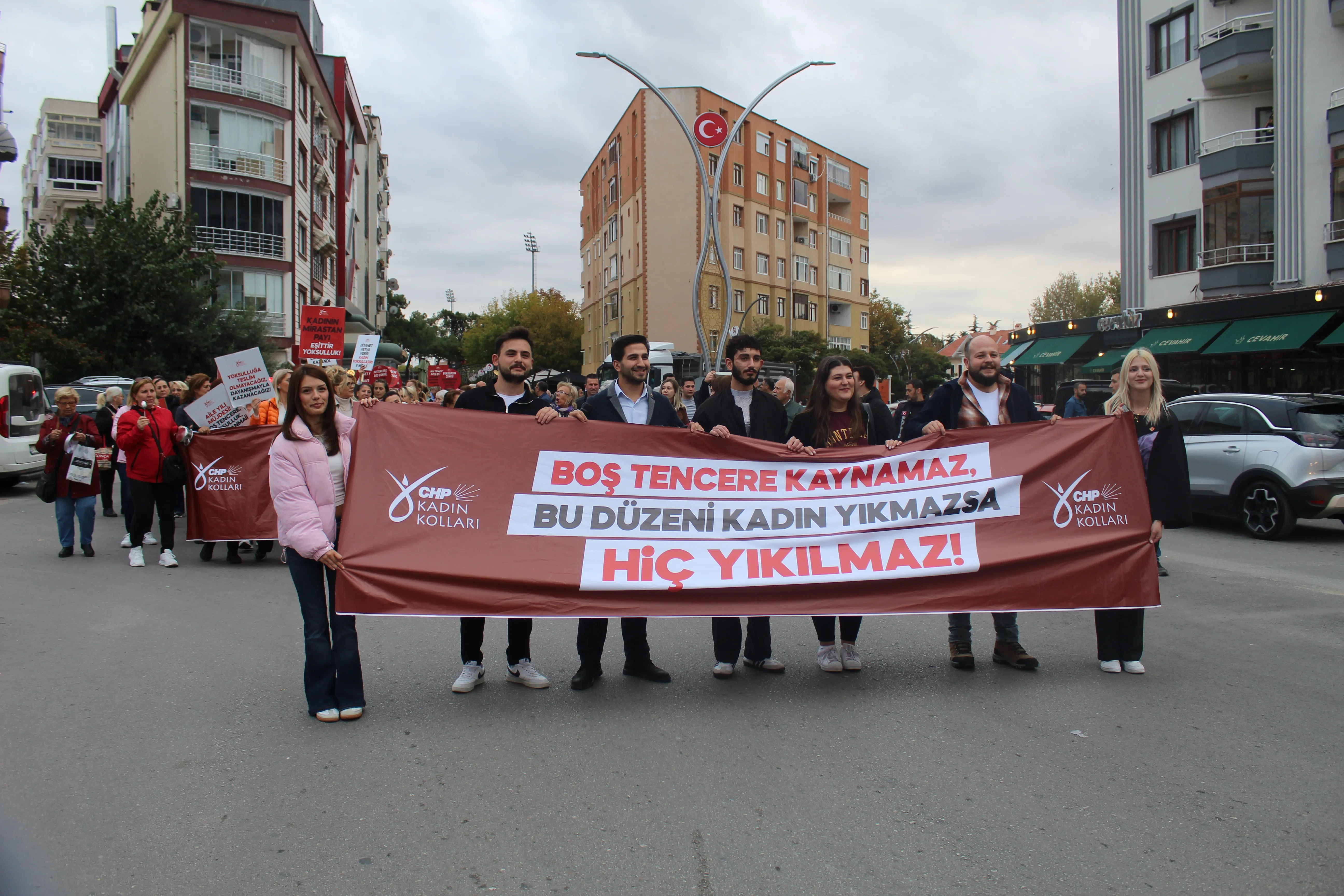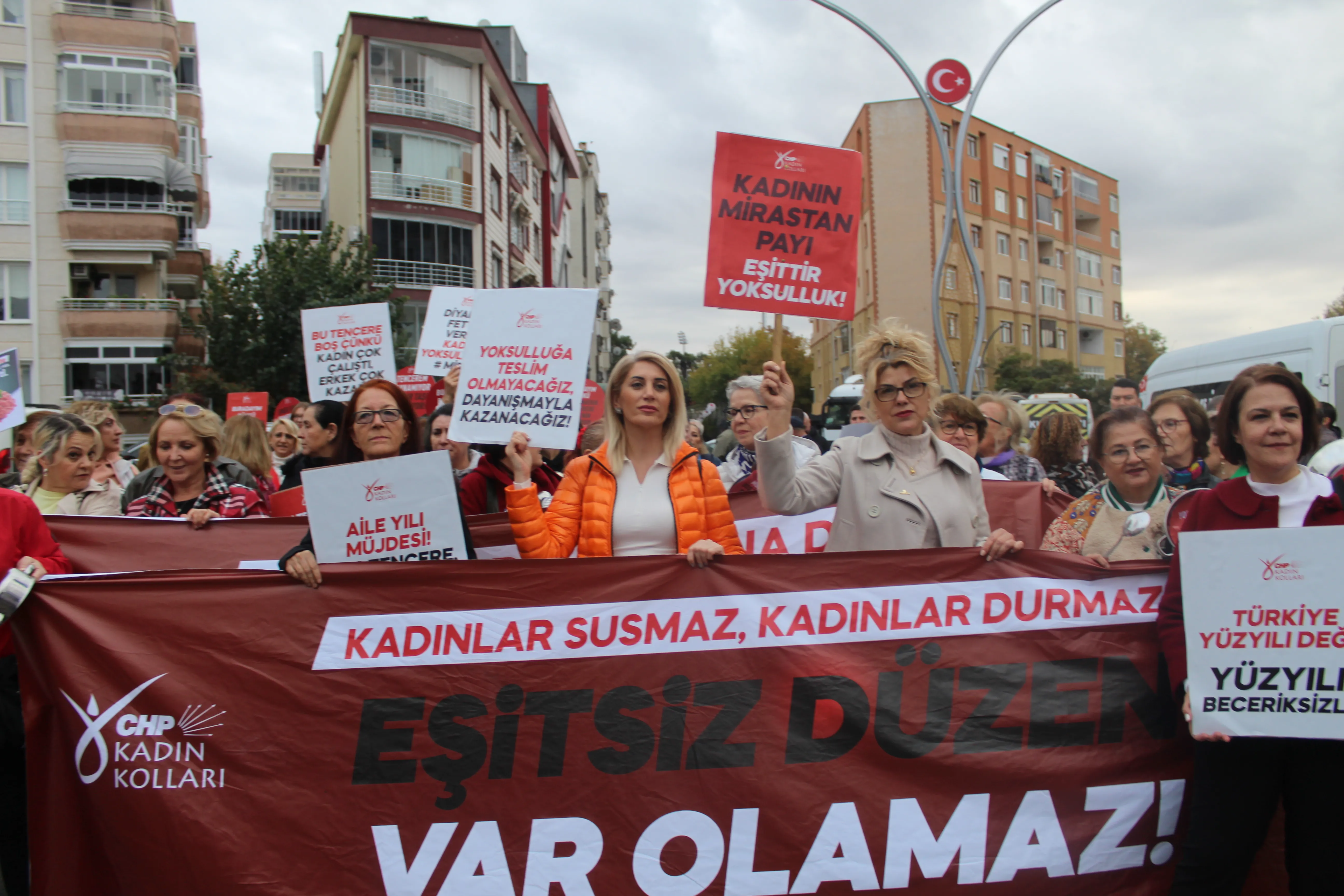 CHP’li kadınlar, eylemde yoksulluğun en ağır yükünü kadınların taşıdığını vurguladı. Şenol, “Kadınlar hem evde hem işte görünmeyen emekle sömürülüyor. Kreş yokluğunda işinden oluyor, güvencesizliğe mahkûm ediliyor. Bu ülkede yoksulluğun bile cinsiyeti var” ifadelerini kullandı.