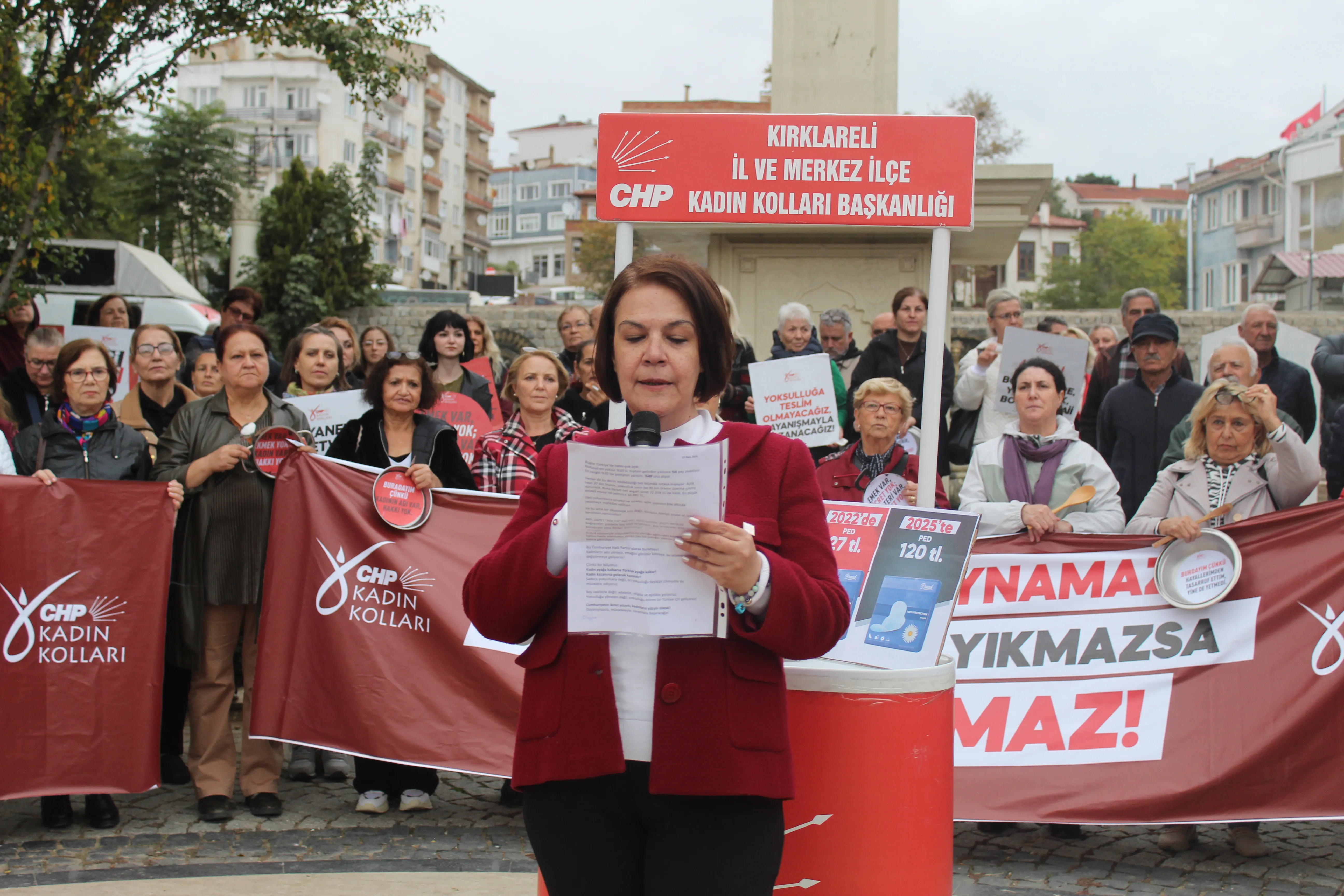 Cumhuriyet Halk Partisi (CHP) Kırklareli İl Kadın Kolları, 17 Ekim Dünya Yoksullukla Mücadele Günü kapsamında “tencere-tava eylemi” düzenleyerek yoksulluğa, adaletsizliğe ve ekonomik krize dikkat çekti. Eylemde konuşan CHP Kırklareli İl Kadın Kolları Başkanı Gökben Şenol, “Bugün bir takvim yaprağı değil, milyonların çaresizliğine karşı yükselen bir itirazdır” dedi.