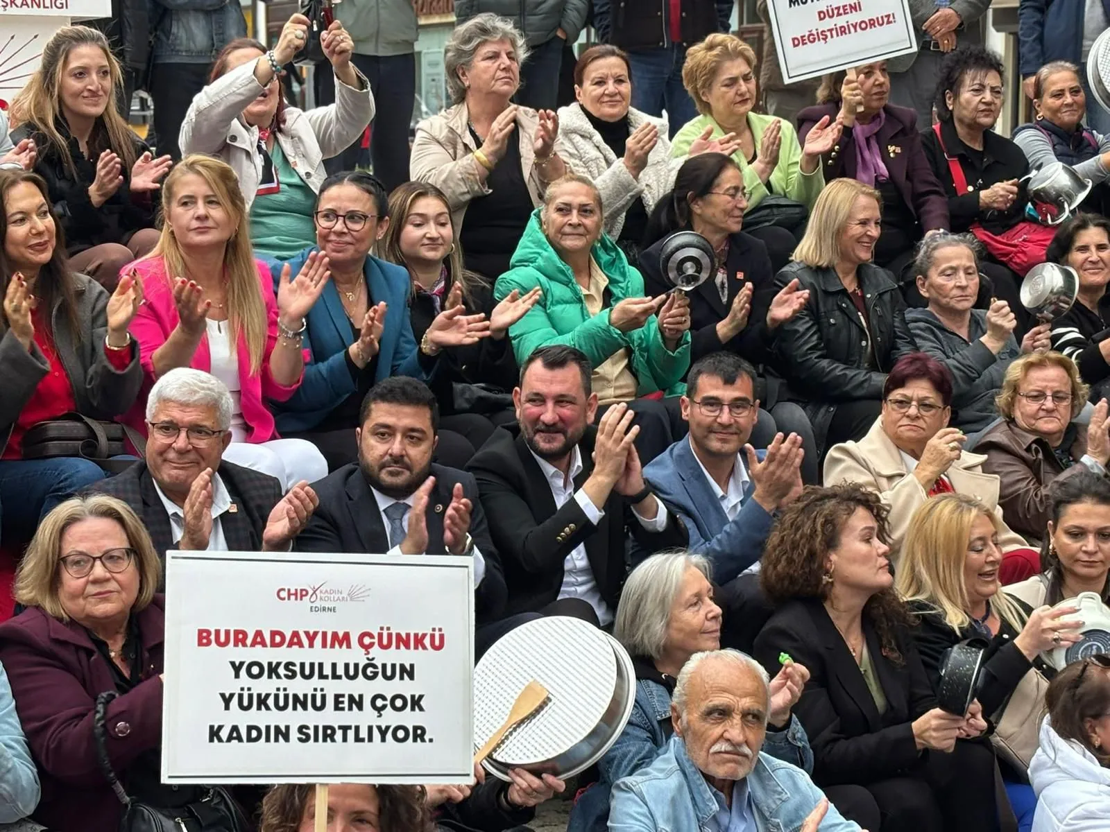 Cumhuriyet Halk Partisi (CHP) Kadın Kolları Genel Başkanlığı tarafından 81 ilde eş zamanlı düzenlenen “Önce Adalet, Önce Hürriyet ve Boş Tencere” eylemi, Edirne’de de ses getirdi. Ellerinde boş tencereler ve düdüklerle yürüyen kadınlar, ekonomik krize ve artan yoksulluğa dikkat çekti. Eylemde, “Geçinemiyoruz”, “Yoksulluk kader değil” sloganlarıyla adalet ve hürriyet çağrısı yapıldı.