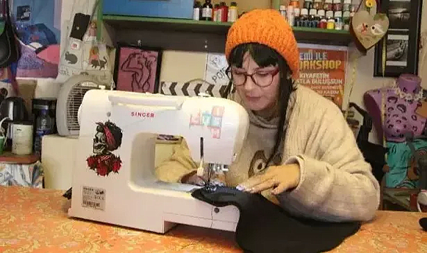 Evde zarar görmüş tüm ürünleri değerlendirip, geri dönüşüme kazandırdığını anlatan Ayas, "Geri dönüşüm yapıyoruz ama sadece zarar görmüş ürünler değil. Evinizde yırtık, lekeli diye kullanmadığımız yatak örtüleri, battaniyelerden montlar dikiyorum. Doğal olarak yatak örtüsü, battaniye çöpe gitmekten ziyade kişinin üzerinde sıcacık bir hırka veya mont oluyor. Annem çeyizime yatak örtüsü almıştı. Anneme bunu monta döndürmek istediğimi söyledim. 9 yıldır evliyim ve 9 yıldır yatağın altında duruyordu. Tamamen kesip, biçip kendime mont yaptım. Annemde şaşırdı, çok mutlu oldu. Yatağın bir köşesinde duruyordu. Ama şu anda üzerimde bir mont olarak kullanabiliyorum. Bu atölyede farklı ve kişiye özel çalışma yapılıyor. Kot pantolondan kişiye özel çantalar dikebiliyorum. Hiçbir şey çöpe gitmiyor" diye konuştu.