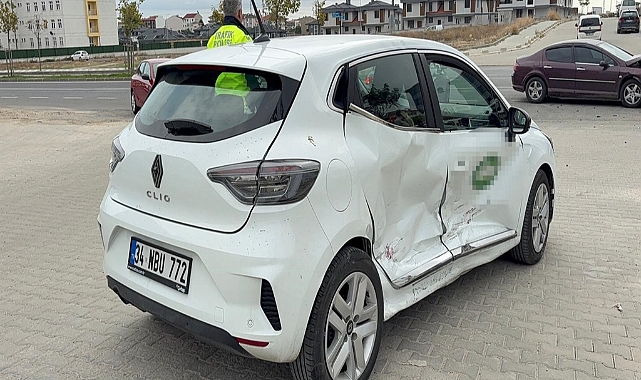 3. Çorlu'da kavşak üzerinde iki otomobil çarpıştı; 2 yaralı