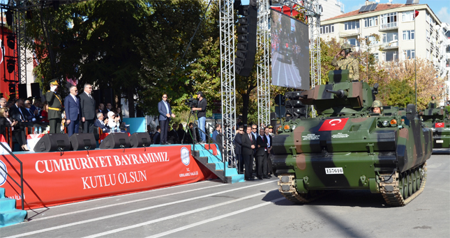 * 29 Ekim Törenlerinde konuşan Kırklareli Valisi Osman Bilgin; “Cumhuriyetimizin ilanı ile Atatürk’ün “Egemenlik Kayıtsız Şartsız Milletindir” sözü uygulamaya konulmuş ve egemenliğin tek sahibi millet olmuştur. Kurtuluş Savaşı’nda kendisine boyunduruk vurmaya kalkışan düşmanlarına karşı ecdadımızın sergilediği birlik ve beraberlik ruhu; vatanımızın bekasına, milletimizin kardeşliğine ve iradesine kast eden hainlere karşı, farklılıklarını bir kenara bırakarak bir ve beraber olan milletimizce 15 Temmuz Hain Kalkışması’nda bir kez daha yaşatılmıştır” dedi. * Cumhurbaşkanı Recep Tayyip Erdoğan ise mesajında; “Ülkemizi ‘Muasır medeniyet seviyesinin üzerine çıkarma’ mücadelemizde ileri demokrasi ve güçlü ekonomi yönünde katettiğimiz her mesafeyi, şanlı geleceğimiz için yakılan bir ışık olarak görüyorum” dedi. Türkiye’de ve yurt dışında yaşayan vatandaşların ve bu gurur gününü Türkiye ile paylaşan tüm dostların 29 Ekim Cumhuriyet Bayramı’nı tebrik eden Cumhurbaşkanı Erdoğan, Cumhuriyetin İlanı’nın 95. Yıldönümü’nde, Gazi Mustafa Kemal Atatürk başta olmak üzere, İstiklal Harbi’nin kazanılmasına ve yeni devletin kuruluşuna öncülük eden tüm kahramanları tazimle yâd ettiğini belirtti.HABER MERKEZİCumhuriyetimizin 95. Yıldönümü Kırklareli’de düzenlenen törenlerle kutlandı. 29 Ekim Cumhuriyet Bayramı Kutlamaları 29 Ekim 2018 Pazartesi günü saat 09.30’da Valilik Makamında tebrikata giriş sırasına göre Vali Osman Bilgin tarafından tebrikler kabul etmesiyle başladı. Vali Bilgin, burada protokolün Bayramını kutladı.* Özgürlük ve Demokrasi Meydanında tören düzenlendi 29 Ekim Cumhuriyet Bayramı Kutlama Töreni saat 10.00′da Özgürlük ve Demokrasi Meydanı’nda devam etti. Buradaki törene; Kırklareli Valisi Osman Bilgin, AK Parti Kırklareli Milletvekili Selahattin Minsolmaz, 55. Mekanize Piyade Tugay Komutanı Piyade Albay Tuğgeneral Turan İnan, Kırklareli Belediye Başkanı Mehmet Siyam Kesimoğlu, Kırklareli Üniversitesi Rektörü Prof. Dr. Bülent Şengörür, Kırklareli Vali Yardımcısı Bekir Sıtkı Kocakundakçı, Kırklareli İl Emniyet Müdürü Erkin Adalar, Kırklareli İl Jandarma Komutanı J. Alb. Kadir Oğuz, Kırklareli İl Genel Meclisi Başkanı Saffet Üresin, Askeri Erkan, Kamu Kurum ve Kuruluş temsilcileri ile vatandaşlar katıldı. Buradaki tören Vali Bilgin, Garnizon Komutanı İnan ve Belediye Başkanı Kesimoğlu’nun halkın ve askeri birliklerin bayramını kutlamasıyla başladı.* Cumhurbaşkanı Erdoğan’ın mesajı dinlendi İstiklal Marşı’nın hep birlikte okunmasının ardından Cumhurbaşkanı Recep Tayyip Erdoğan’ın 29 Ekim Cumhuriyet Bayramı nedeniyle yayımladığı mesaj dinlendi. Cumhuriyetin kuruluşunun 95. Yıldönümü nedeniyle bir mesaj yayımlayan Cumhurbaşkanı Erdoğan; “Ülkemizi ‘muasır medeniyet seviyesinin üzerine çıkarma’ mücadelemizde ileri demokrasi ve güçlü ekonomi yönünde katettiğimiz her mesafeyi, şanlı geleceğimiz için yakılan bir ışık olarak görüyorum” dedi. Türkiye’de ve yurt dışında yaşayan vatandaşların ve bu gurur gününü Türkiye ile paylaşan tüm dostların 29 Ekim Cumhuriyet Bayramı’nı tebrik eden Cumhurbaşkanı Erdoğan, Cumhuriyetin ilanının 95. Yıldönümü’nde, Gazi Mustafa Kemal Atatürk başta olmak üzere, İstiklal Harbi’nin kazanılmasına ve yeni devletin kuruluşuna öncülük eden tüm kahramanları tazimle yâd ettiğini belirtti.İlk Meclis’ten bugüne kadar, millî iradenin temsilcisi olarak Türkiye’nin kurtuluşu, gelişmesi, büyümesi ve güçlenmesi için gayret sarf eden milletvekillerine de şükranlarını sunduğunu ifade eden Cumhurbaşkanı Erdoğan; “Bin yıllık vatanımız Anadolu topraklarının her karışında kanı ve alın teri olan tüm ecdada, şehitlerimize, gazilerimize Allah’tan rahmet diliyorum” dedi.Terörle mücadelede ve 15 Temmuz’da hayatlarını kaybeden güvenlik güçlerinin ve vatandaşların aziz hatıralarının, milletin hafızasında ve devletin kimliğinde daima yaşayacağını vurgulayan Cumhurbaşkanı Erdoğan, “Ülkemizi ‘muasır medeniyet seviyesinin üzerine çıkarma’ mücadelemizde ileri demokrasi ve güçlü ekonomi yönünde katettiğimiz her mesafeyi, şanlı geleceğimiz için yakılan bir ışık olarak görüyorum” ifadelerini kullandı.İstanbul’daki yeni havalimanının da bu ışıklardan biri olduğunu dile getiren Cumhurbaşkanı Erdoğan, mesajında şunları kaydetti:“Selçuklu’dan Osmanlı’ya ve oradan genç Türkiye Cumhuriyeti’ne devreden tarihî süreklilik içinde süren büyük yolculuğumuzu, inşallah, 2023 hedeflerimizle taçlandıracak, 2053 ve 2071 vizyonlarımızla da bir üst seviyeye çıkartacağız. Malazgirt’ten başlayıp son bir asırdır Çanakkale’de, Kut’ülAmare’de, Dumlupınar’da, Kıbrıs’ta devam eden zaferlerimizden, Suriye’deki insani duruşumuza kadar her gelişme, milletimizin asil duruşunun sembolleridir. Türkiye’nin her başarısı, aynı zamanda insanlığın ortak vicdanındaki, bölgemizdeki ve dünyadaki tüm mazlumların, mağdurların yüreğindeki umutları besliyor, canlandırıyor, harekete geçiriyor.”Bu sebeple Türkiye’nin, dünyanın en büyük 17. ekonomisi olduğu hâlde, insani yardımlar konusunda millî gelire göre ilk sırada bulunduğunun altını çizen Cumhurbaşkanı Erdoğan, “Herkesin kapısını ve kalbini kapattığı sığınmacılara evini ve yüreğini açan, insani sorumluluklarını bihakkın yerine getiren tek ülke Türkiye olmuştur” diye ekledi.Tarihe, mazlumlara sırtını dönene değil, evini ve ekmeğini bölüşen, her konuda tercihini haktan ve adaletten yana kullanan bir ülke olarak geçmenin şerefinin bu millete yettiğini söyleyen Cumhurbaşkanı Erdoğan, “Bu duruşumu