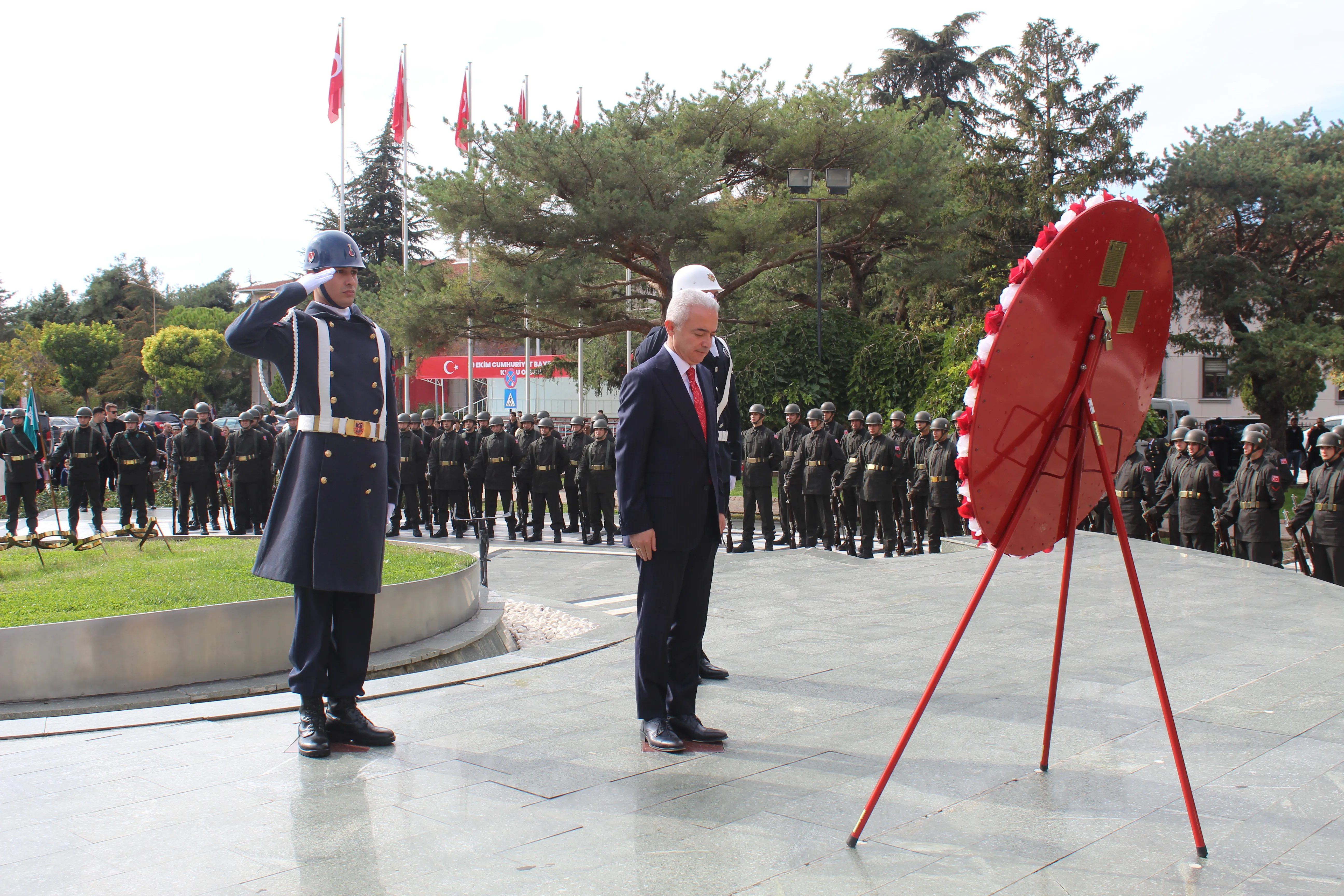 Çelenk sunumunun ardından katılımcılar, Cumhuriyetin kurucusu Gazi Mustafa Kemal Atatürk ve silah arkadaşlarının anısına saygı duruşunda bulundu. Ardından hep bir ağızdan İstiklal Marşı okundu. Meydanda yankılanan marş, katılımcılara duygu dolu anlar yaşattı. Türk bayraklarıyla donatılan meydan, kırmızı-beyaz renklerle Cumhuriyet coşkusuna büründü.