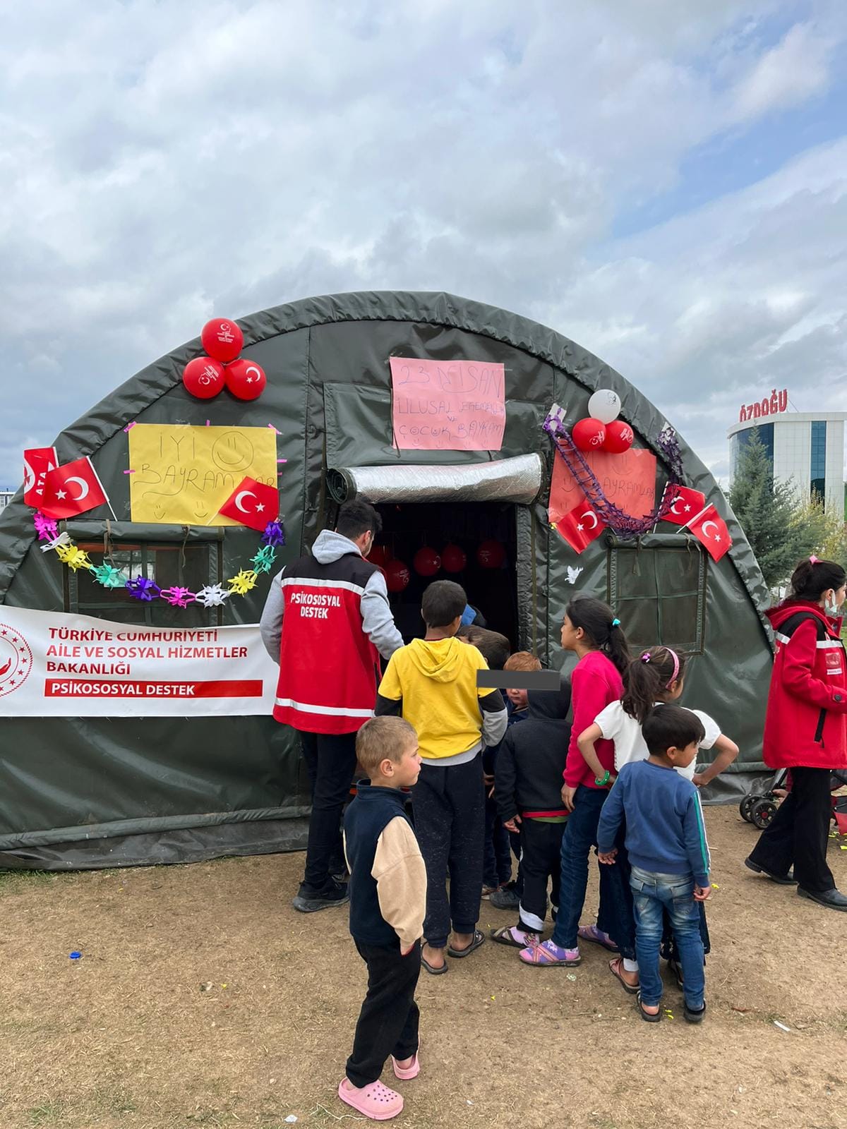 Kırklareli Aile ve Sosyal Hizmetler Müdürlüğü personellerinden oluşan Psikososyal Destek Ekipleri Malatya’da Faaliyetlerini sürdürüyor. Ekipler çocuklara 23 Nisan’a özel etkinlikler hayata geçirerek bu özel günde onları yalnız bırakmadı.Etkinlikler hakkında Kırklareli Aile ve Sosyal Hizmetler Müdürlüğünden yayınlanan açıklamada ifadeleri kullanıldı; “Psikososyal Destek Ekiplerimiz Malatya'da depremden etkilenen çocuklarımızla birlikte Atatürk'ün dünya çocuklarına armağan ettiği, 23 Nisan Ulusal Egemenlik ve Çocuk Bayramı için oyun alanları kurarak çeşitli etkinlikler düzenlemişlerdir.”