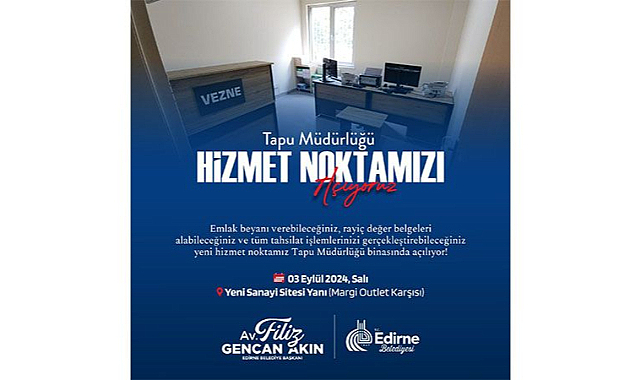 Edirne Belediyesi, vatandaşlara hızlı ve kolay hizmet sunma amacıyla, Tapu İl Müdürlüğü binasında yeni bir belediye hizmet noktası açtı. Bu hizmet noktası, emlak beyanı verme, Rayiç değer belgesi alma ve tahsilat işlemleri gibi işlemleri daha pratik hale getirerek vatandaşların işlemlerini kolaylaştırmayı hedefliyor.