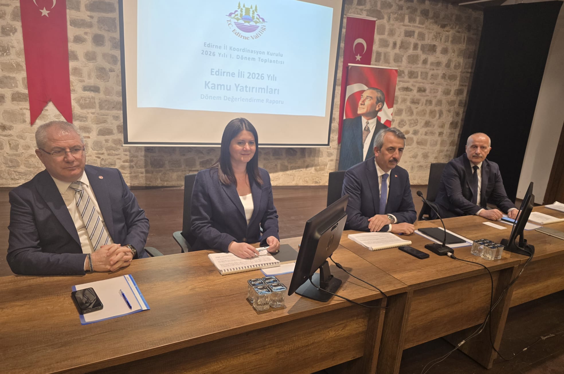 Edirne’de 2026 yılı yatırım programı kapsamında yürütülen projeler, İl Koordinasyon Kurulu Toplantısı’nda detaylı şekilde ele alındı. Devecihan Kültür Merkezi’nde Vali Yunus Sezer başkanlığında gerçekleştirilen toplantıda, toplam bedeli 102 milyar TL olan 233 projenin son durumu paylaşıldı. Yılın ilk döneminde projeler için 1,2 milyar TL harcama yapıldığı ve genel gerçekleşme oranının yüzde 7 seviyesinde olduğu açıklandı.