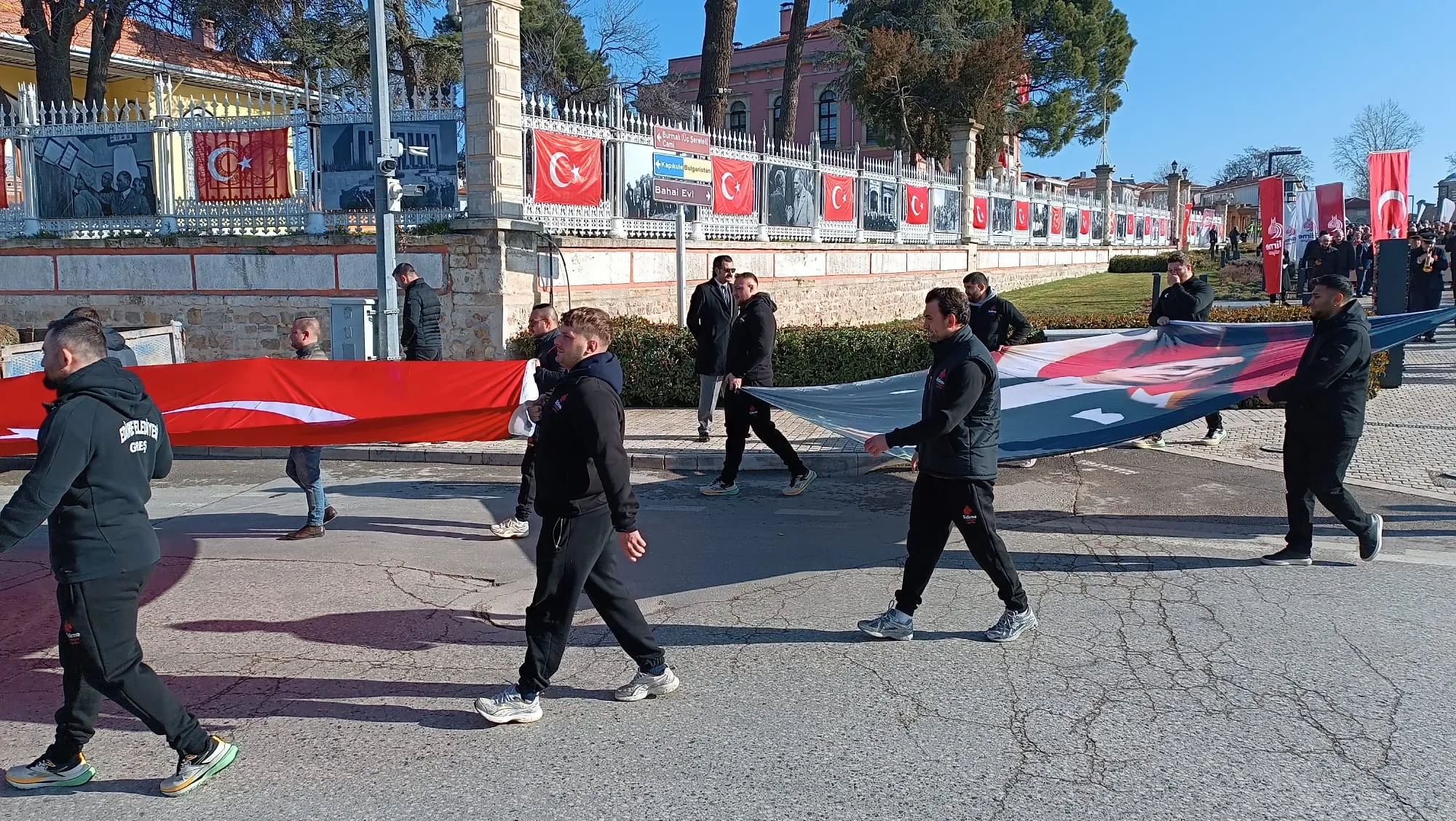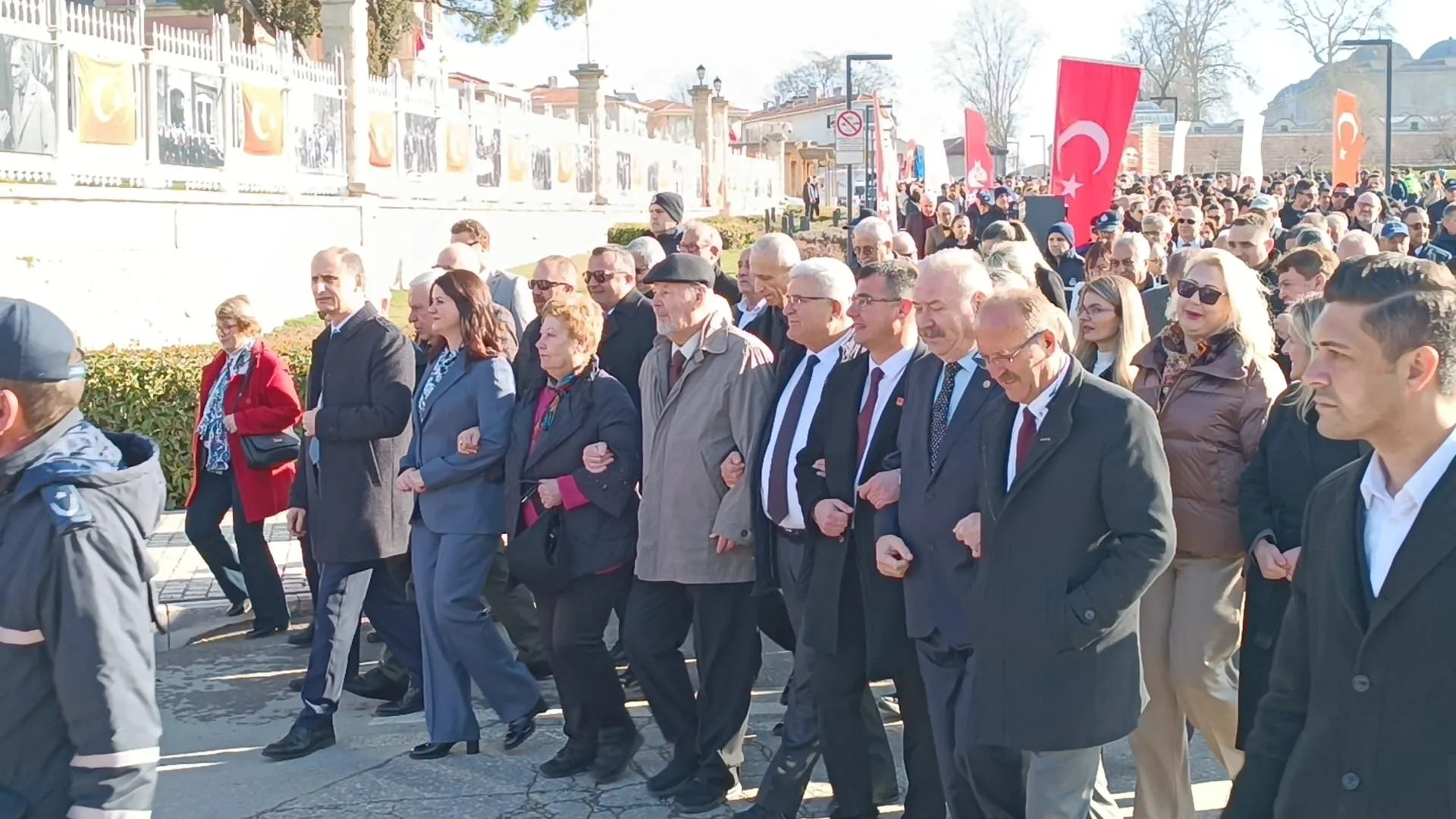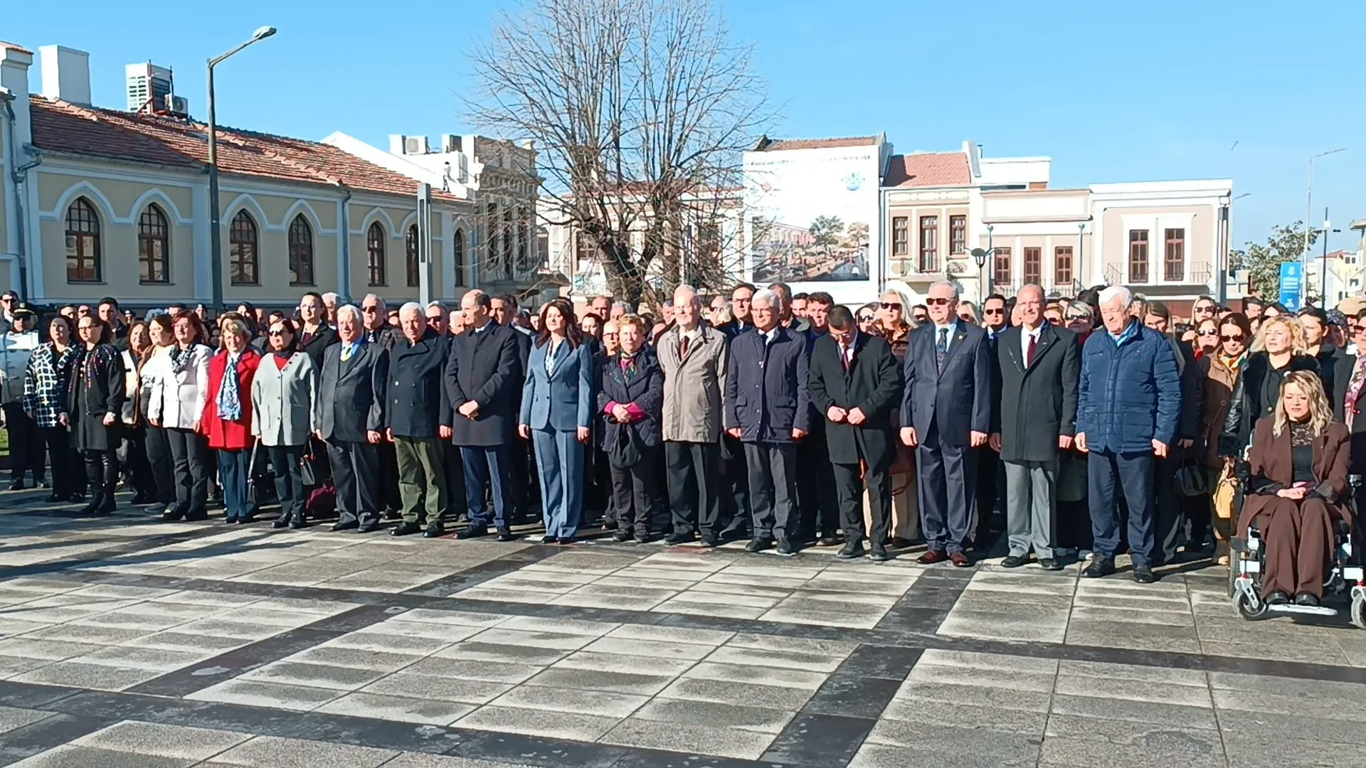 Kutlama programı kapsamında belediye çalışanları ve katılımcılar, bando eşliğinde tarihi belediye binasından Atatürk Anıtı’na kadar yürüdü. Yürüyüşün ardından anıta çelenk sunulurken saygı duruşunda bulunuldu ve İstiklal Marşı okunarak tören gerçekleştirildi.