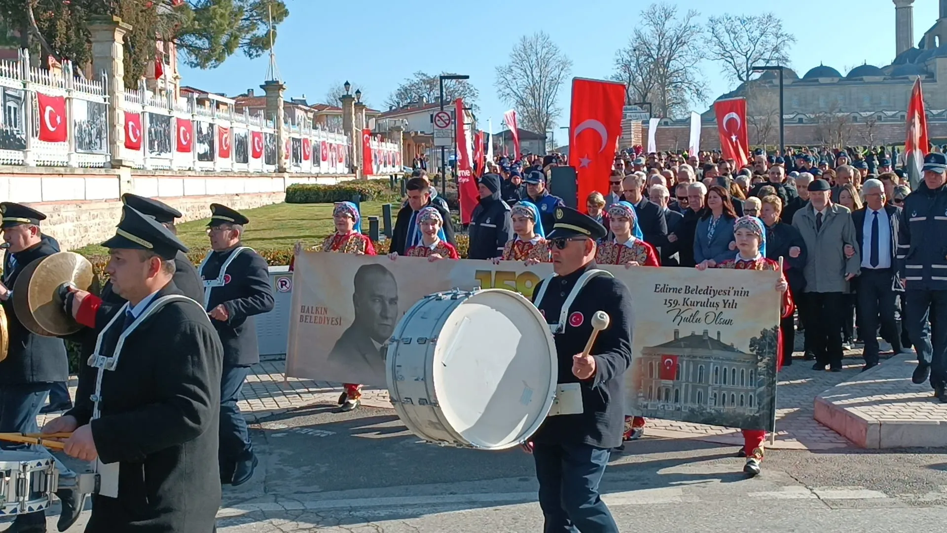 Türkiye’nin ilk kurulan belediyeleri arasında yer alan Edirne Belediyesi, 159. kuruluş yıl dönümünü düzenlenen törenle kutladı. Kentin köklü kurumlarından biri olan belediyenin yıl dönümü programı, tarihi belediye binası önünden başlayan kortej yürüyüşü ile başladı.