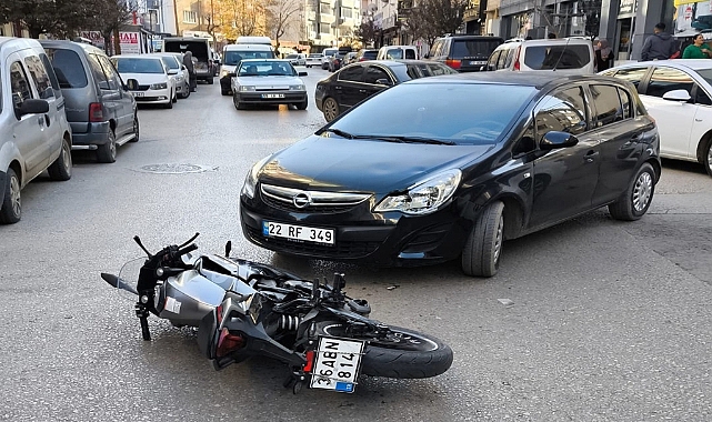 İkinci kaza ise saat 15.00 sıralarında İspat Camii Mahallesi Kurtuluş Caddesi’nde meydana geldi. Safiye Erol Sokak’tan, Kurtuluş Caddesi’ne dönüş yapan Ç.K. (18) yönetimindeki 22 RF 349 plakalı otomobil, Askeri Kantin’den, Cumhuriyet Meydanı yönüne giden M.E.V. (33) idaresindeki 36 ABN 814 plakalı motosikletle çarpıştı. Devrilen motosikletten sürücüsü M.E.V. yaralandı.