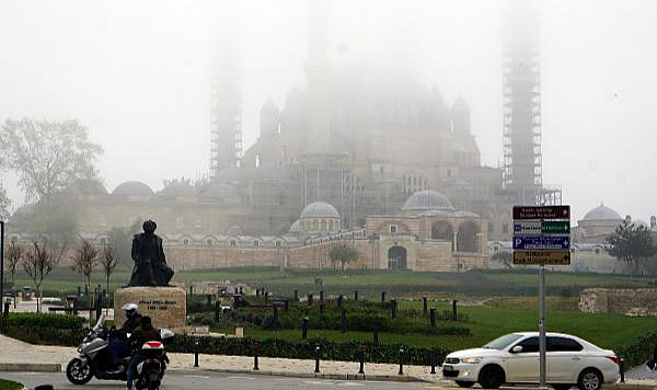 EDİRNE'de, sabah saatlerinde etkili olan yoğun sis nedeniyle görüş mesafesi 50 metreye kadar düştü, tarihi Selimiye Camisi ise gözden kayboldu.