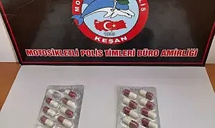 EDİRNE’nin Keşan ilçesinde polis tarafından üzerinde 28 sentetik uyuşturucu hap ele geçirilen İ.S., gözaltına alındı.