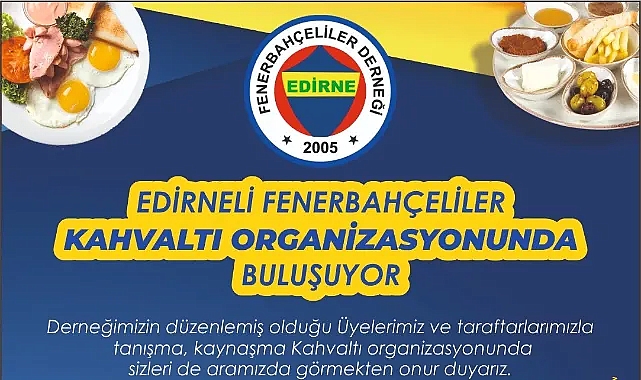 Edirne Fenerbahçeliler Derneği Başkanı Nedim Mercan, organizasyonla ilgili yaptığı açıklamada, "Sarı Lacivert çatımız altında Fenerbahçemize hep destek, tam destek duygusu ile hareket eden dernek yöneticilerimizin de öncülüğünde buluşacağımız kahvaltı organizasyonumuzda tüm üyelerimizi ve Edirneli taraftarlarımızı aramızda görmeyi umuyoruz," diyerek tüm taraftarları davet etti.
