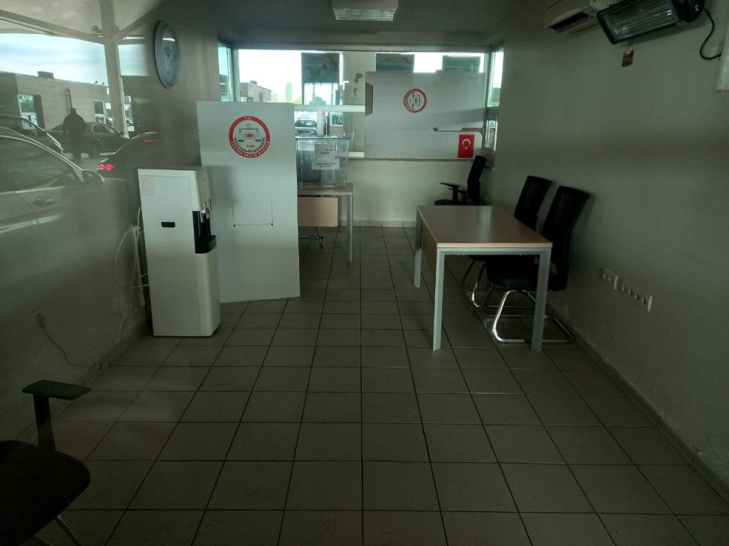 TÜRKİYE'de 14 Mayıs'ta yapılacak Cumhurbaşkanı ve milletvekilliği seçimlerinde yurt dışı seçmen kütüğüne kayıtlı kişilerin oy kullanacağı sınır kapılarında sandıklar kuruldu, hazırlıklar tamamlan