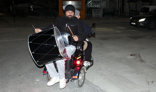 TEKİRDAĞ’ın Çerkezköy ilçesinde Erhan Halka (31), 7 aylık hamile eşi Sevgi Halka’nın (29) kullandığı elektrikli motosiklete ters binip davul çalarak mahalleliyi sahura kaldırıyor. Halka, "Ben davul çalıyorum, eşim de motosikleti kullanıyor. Böylece motorize ekip gibi çalışıyoruz. Zamandan tasarruf ederek halkımıza daha iyi hizmet vermeye çalışıyoruz. Her sokağa girip vatandaşlarımızı sahura kaldırıyoruz” dedi.