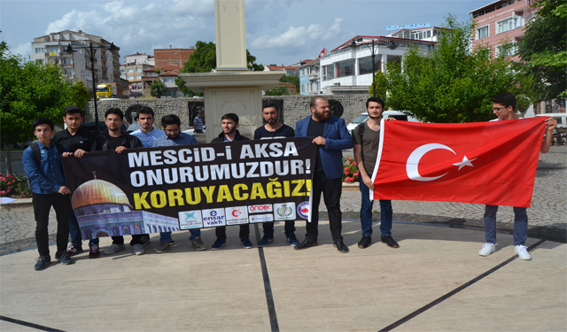 Türkiye Gençlik Vakfı, ABD’nin Kudüs’te İsrail Büyükelçiliği açması kararı sonrasında sokağa dökülerek tepkilerini ortaya koyan Filistinlilere katliam yapan İsrail’in zulmüne düzenlediği basın açıklamasıyla tepki gösterdi.