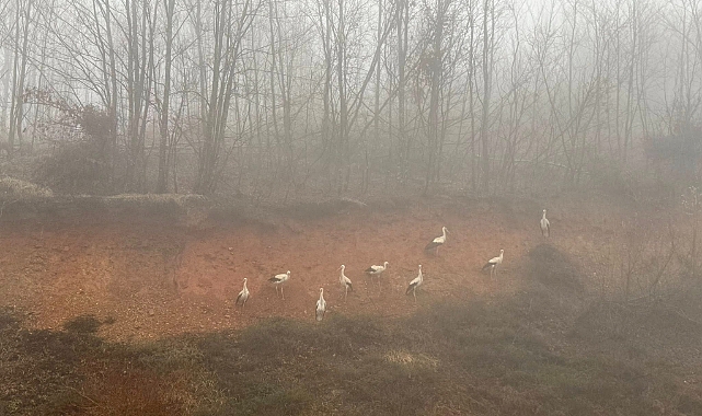 SICAKLIKLARIN artmasıyla Afrika'dan Avrupa'ya göç eden leylekler, sis nedeniyle Kırklareli’nin Demirköy ilçesinde kara yolu kenarına indi.