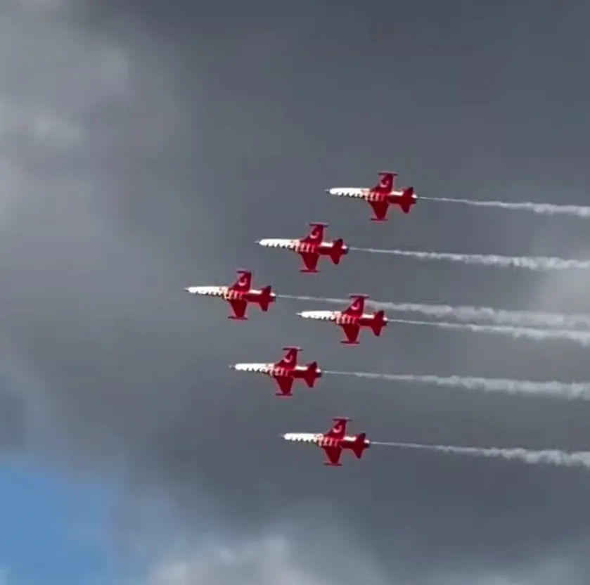 Yaklaşık yarım saat süren gösteride Türk Yıldızları, senkronize dönüşler, dikey yükselişler ve solo manevralarla izleyenleri büyüledi. Jetlerin hız, çeviklik ve uyum içindeki hareketleri, izleyicilerden sık sık alkış aldı. Gökyüzünde oluşturulan “Ay-Yıldız” formasyonu, Cumhuriyet coşkusunu simgeleyen en etkileyici anlardan biri oldu.