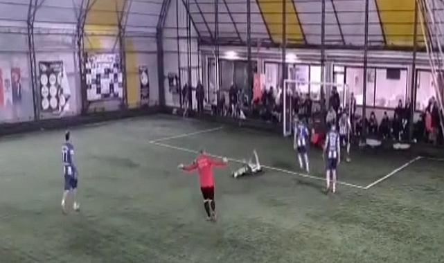 Yaşanan olay halı sahanın güvenlik kamerasına yansıdı.