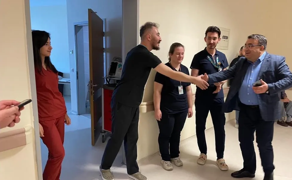 Bayram ziyaretinde hastane yöneticileri, sağlık çalışanlarıyla bir araya gelerek bayramlaştı ve birlikte bayramın coşkusunu yaşadı. Hastane yönetimi, sağlık çalışanlarının özverili çalışmaları ve fedakarlıkları için teşekkürlerini ileterek, milletin ve insanlığın sağlık, huzur ve güzelliklerle dolu bir bayram geçirmesini diledi.