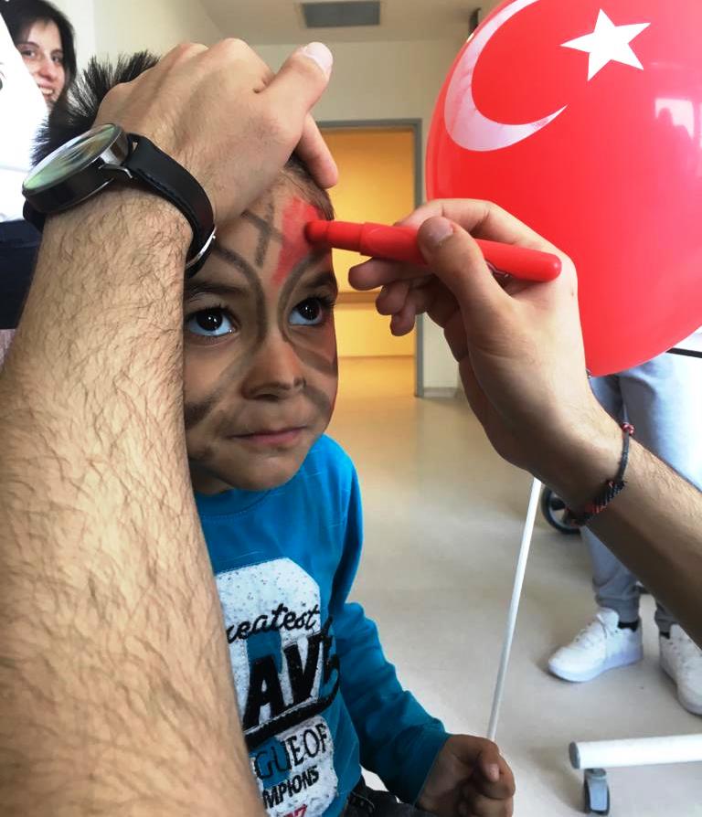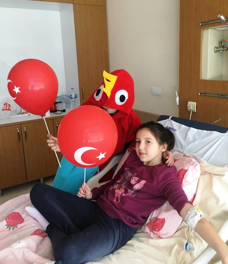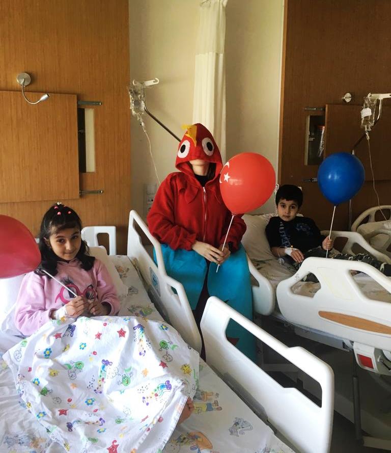 Kırklareli Eğitim Ve Araştırma Hastanesinde 23 Nisan Ulusal Egemenlik ve Çocuk Bayramı etkinlikleri düzenlendi. Yapılan bu etkinliğe Kırklareli Üniversitesi Çocuk Gelişimi lisans öğrencileri de gönüllü olarak katıldı. Gönüllü öğrenciler, Çocuk Polikliniğine muayeneye gelen ve çocuk kliniğinde yatarak tedavi gören çocuklara papağan kostümü ile balonlar dağıttı.23 Nisan Çocuk Bayramı etkinlikleri kapsamında poliklinik kan alma bölümünde boyama yapmak isteyen çocuklar için boyama standı, yüz boyası yaptırmak isteyen çocuklar için ise yüz boyama standı kuruldu. Etkinliğe katılım sağlayarak destek veren gönüllü lisans öğrencileri, çocuk Polikliniğine muayene için gelen ve çocuk kliniğinde yatarak tedavi olan çocuklar için kostümleriyle sadece balon değil mutluluk da dağıttı.(Metin Karakuş)