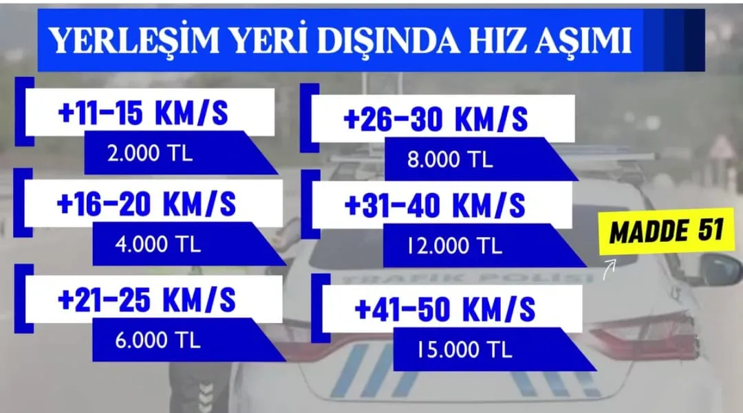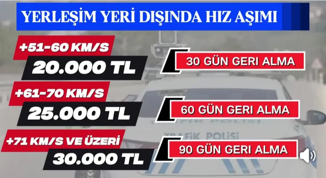 Bu sistemle birlikte hız ihlalinin artması durumunda ceza miktarı da doğrudan artacak. Yetkililer, özellikle şehir içi trafikte hız limitlerine uyulmasının hayati önem taşıdığını vurguluyor.