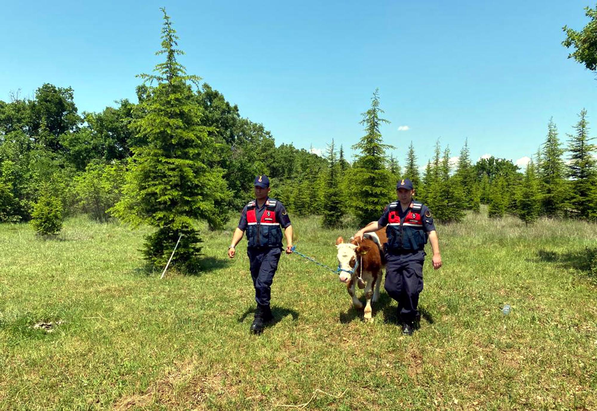 KIRKLARELİ'nin Lüleburgaz ilçesinde Cihan Avcı'nın kaybolan düvesi, jandarma ekiplerince dronla havadan 4 saat yapılan arama sonucu ormanda buldu