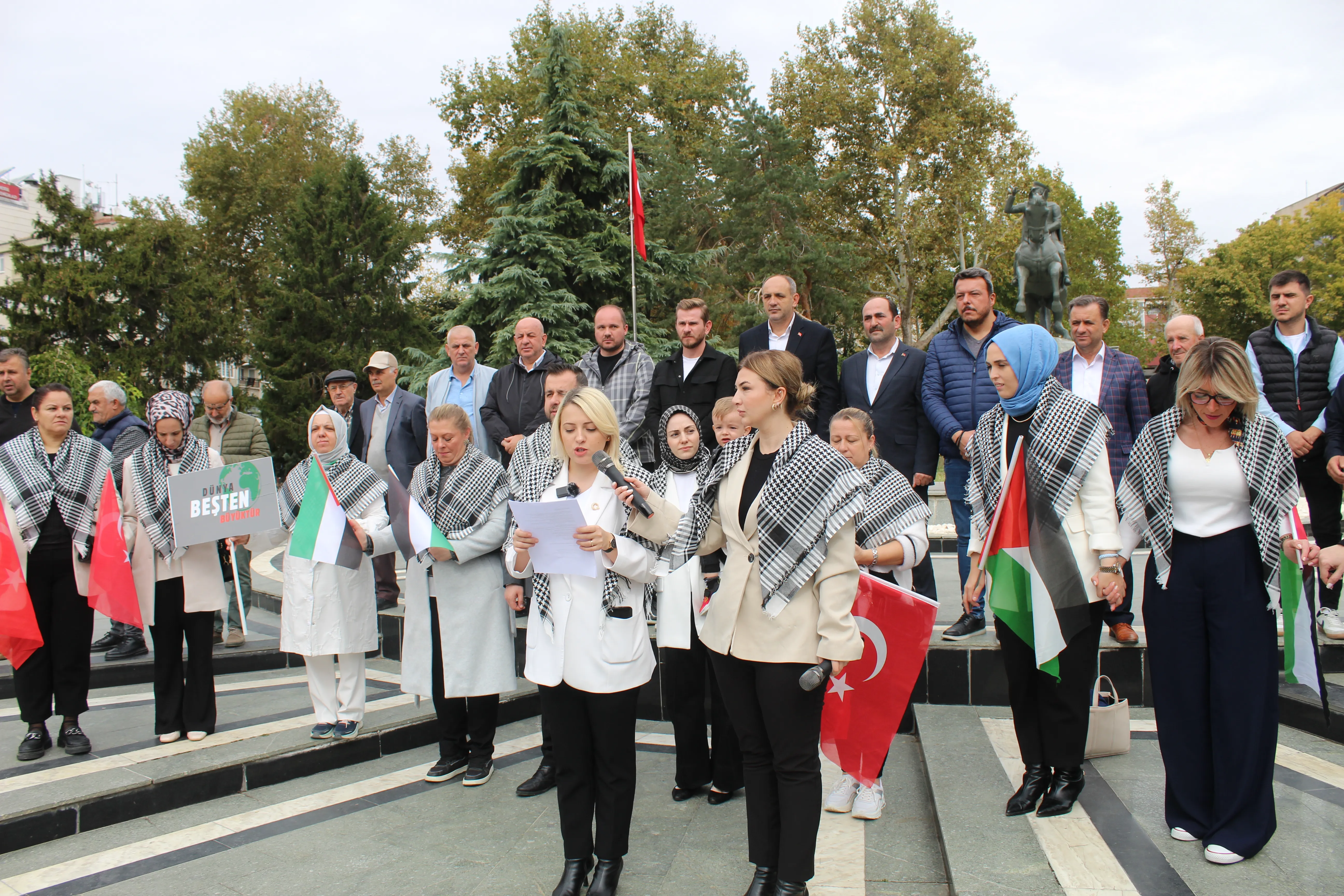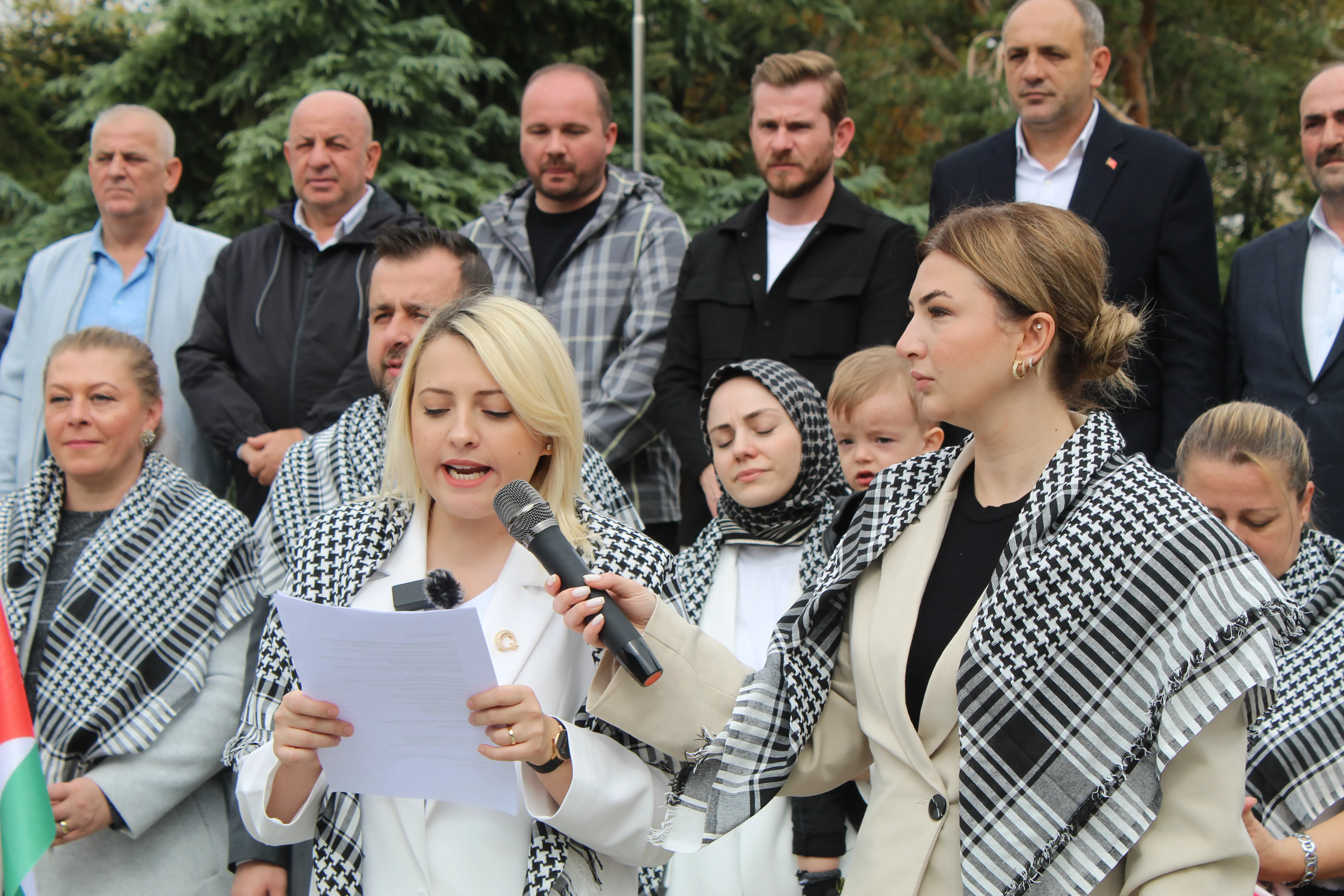 Başkan Genim, zulme sessiz kalmanın önemine vurgu yaparak, “Bugün Türkiye’den tüm dünyaya tek bir şey söylüyoruz: Barış kadınla mümkündür. Vicdanlarımızla haykırıyoruz. Sessizliğimiz, Gazze’nin en gür çığlığı olacaktır.” sözlerini kaydetti.