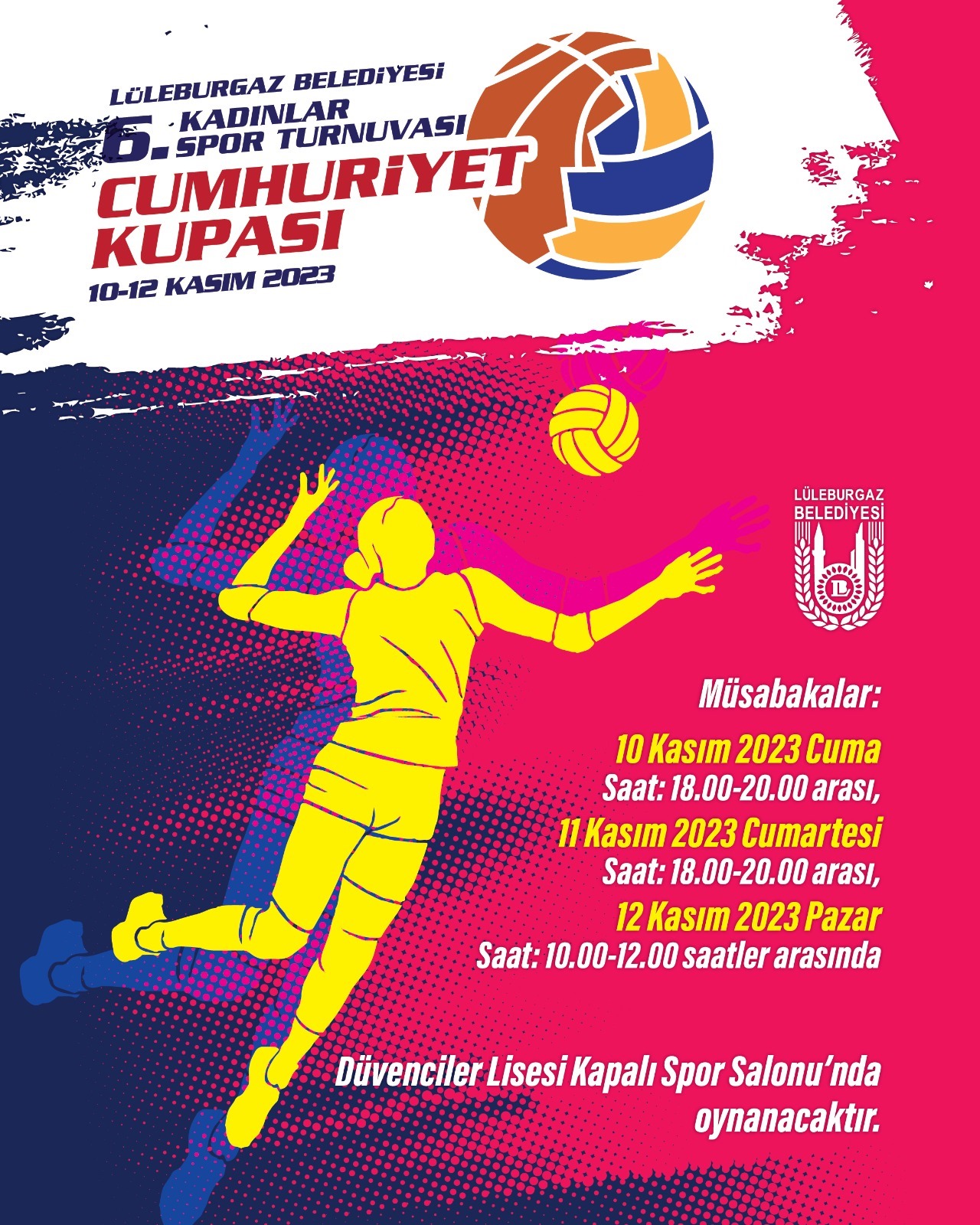 Lüleburgaz Belediyesi’nin 6’ncı Kadınlar Spor Turnuvası Cumhuriyet Kupası 10-12 Kasım tarihleri arasında gerçekleştirilecek.