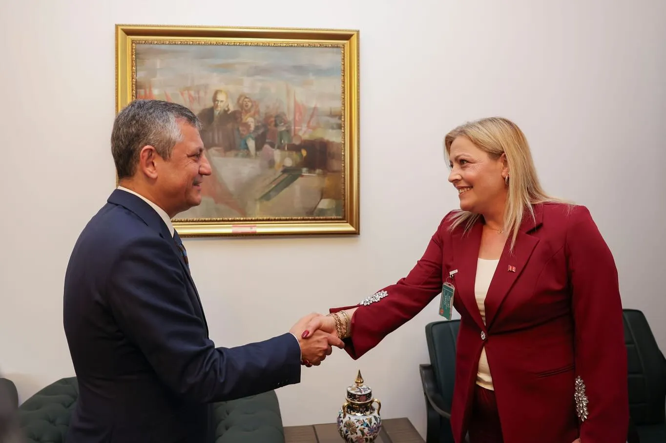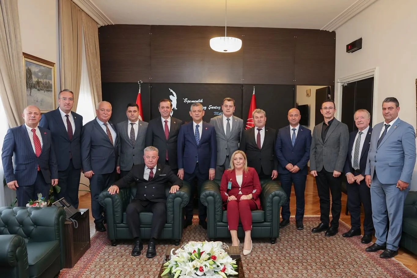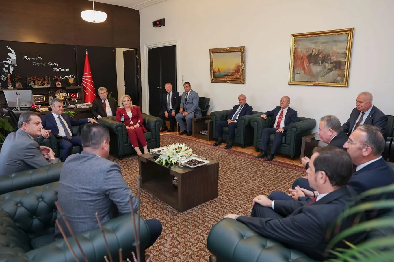 Grup toplantısı sonrası CHP Genel Başkanı Özgür Özel’i makamında ziyaret eden Çevikbaş, Kaynarcalı vatandaşların selamlarını iletti. Çevikbaş, ziyarette belediyenin çalışmaları, bölgenin ihtiyaçları ve yerel yönetim projeleri hakkında değerlendirmelerde bulundu.