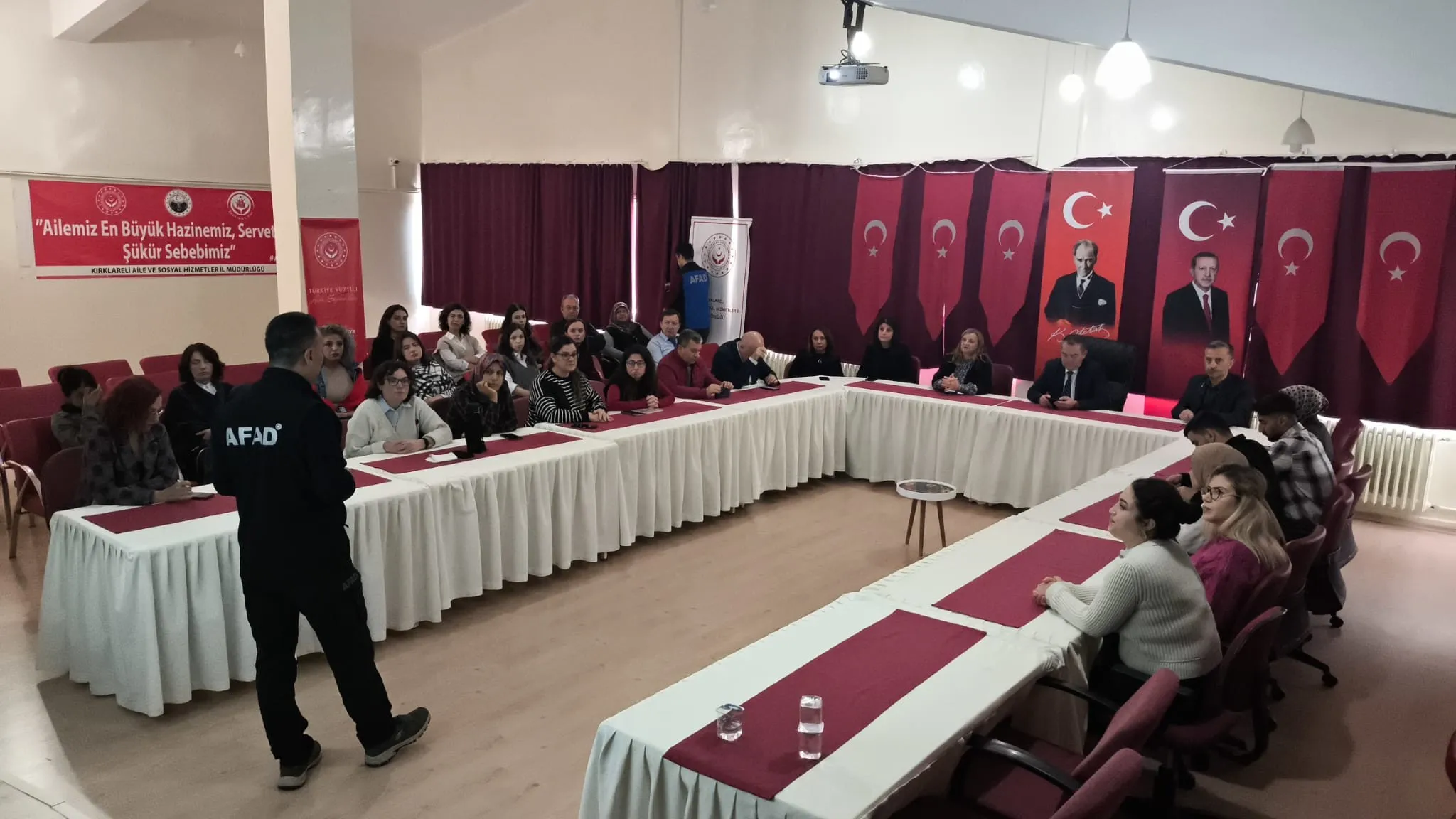 Kırklareli İl Afet ve Acil Durum Müdürlüğü personeli tarafından verilen eğitimde, katılımcıların afetlere karşı bilinçlendirilmesi ve müdahale kapasitelerinin artırılması hedeflendi. Eğitim, afet yönetimi ve acil durum planlaması konularında kapsamlı bilgiler sundu.