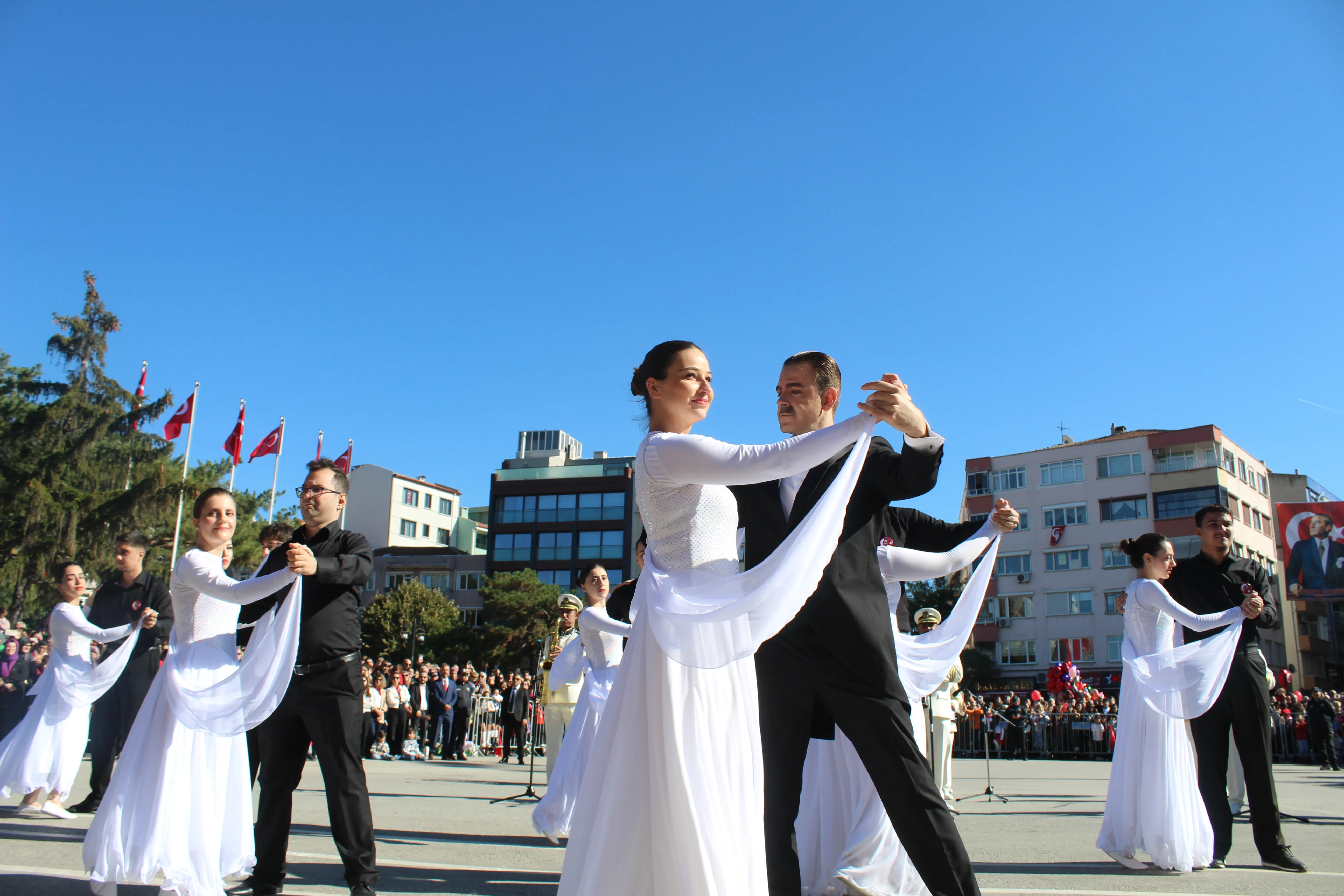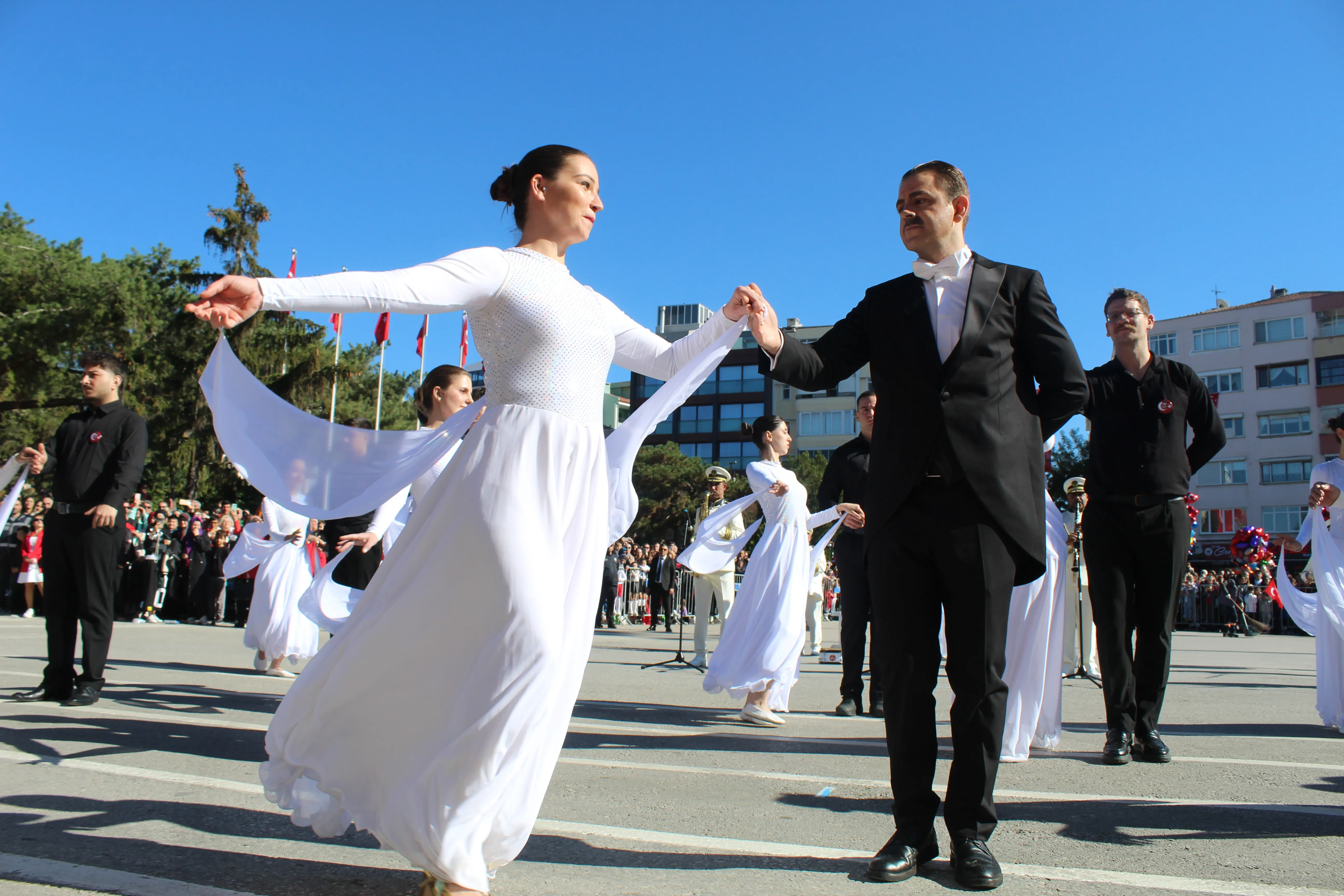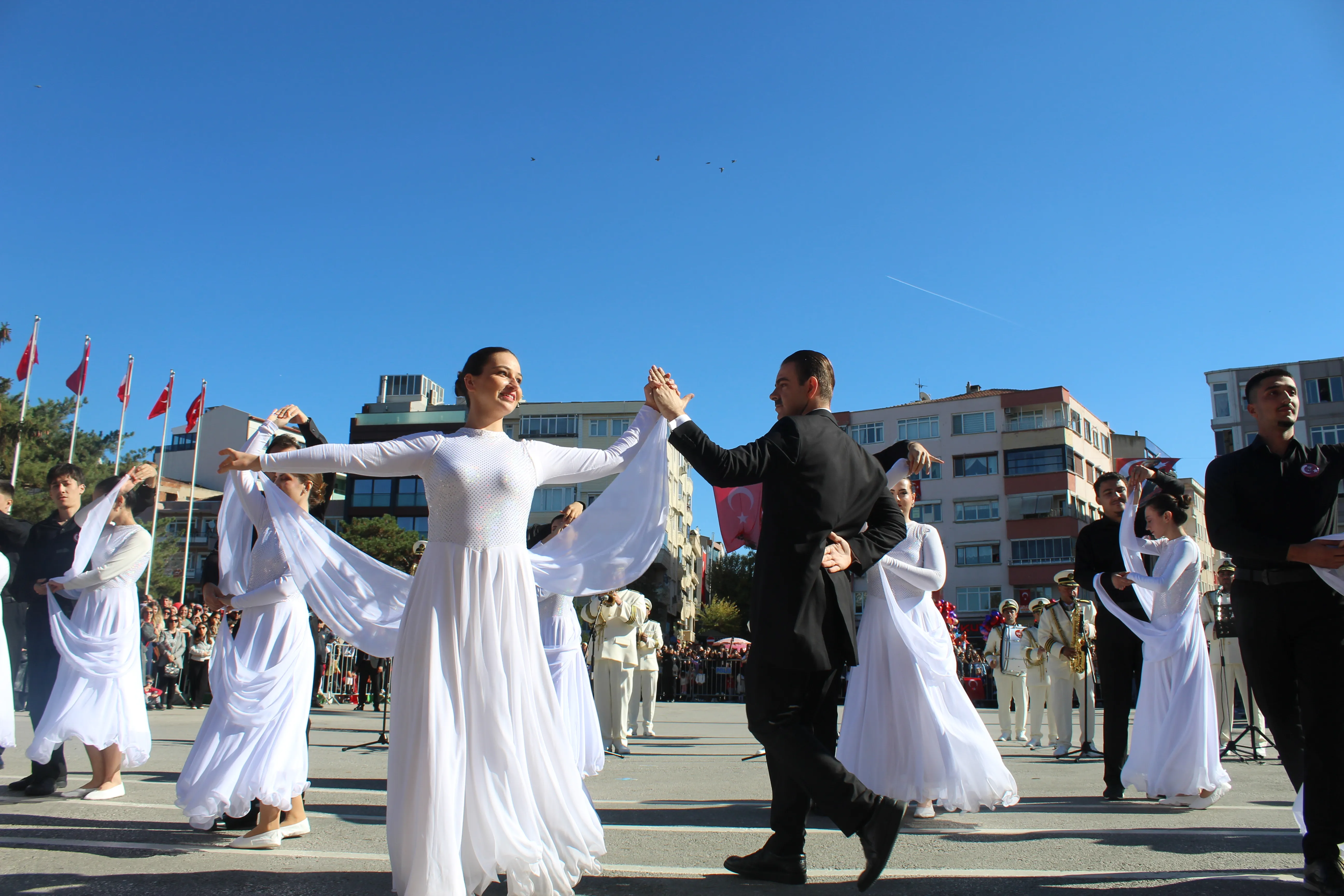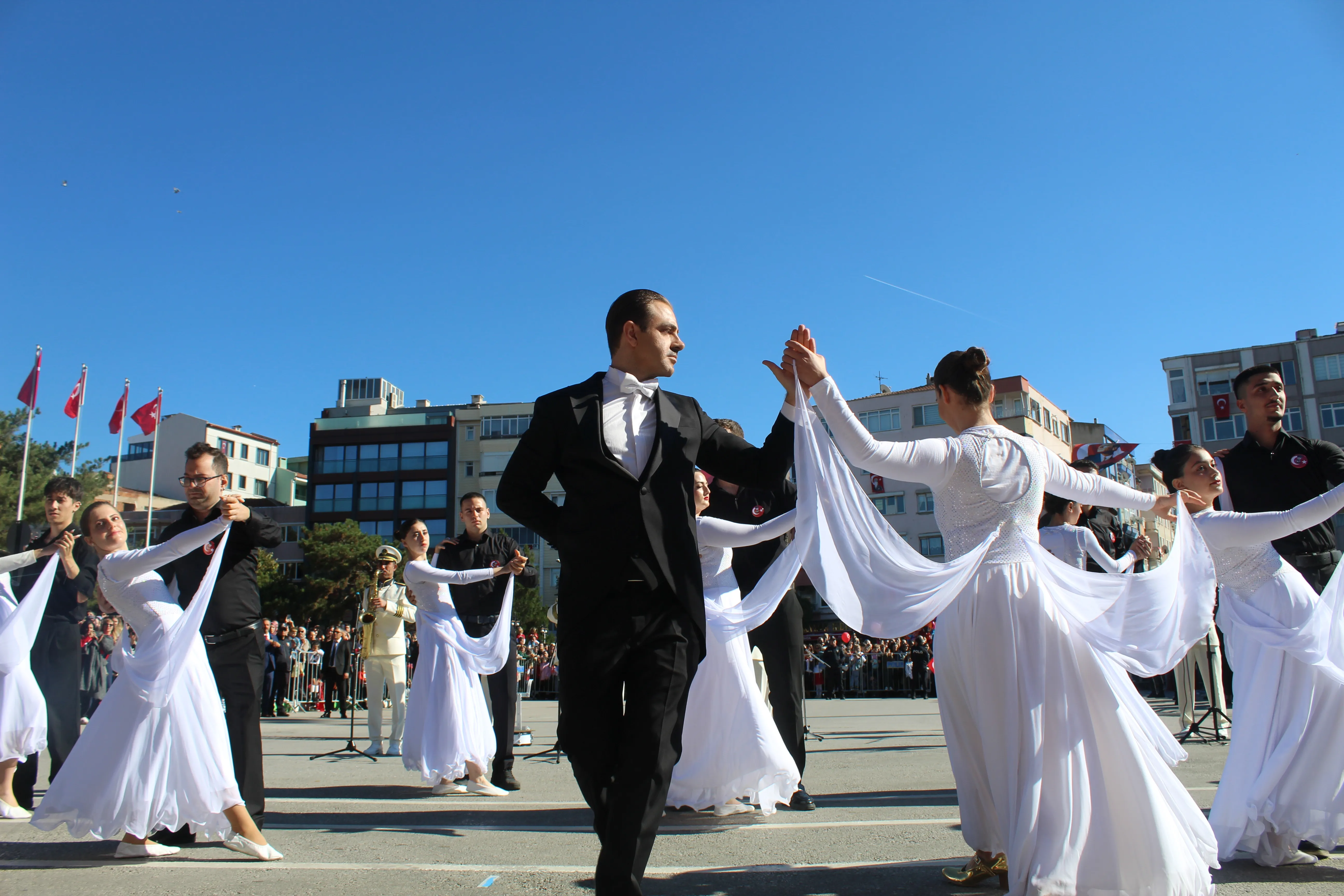 Kırklareli Belediyesi Dans Grubu, 29 Ekim Cumhuriyet Bayramı kutlamaları kapsamında sergilediği özel performansla büyük beğeni topladı. Cumhuriyet coşkusunun doyasıya yaşandığı törende dans grubu, “Fikrimin İnce Gülü” şarkısı eşliğinde gerçekleştirdiği gösteriyle izleyenleri duygulandırdı.