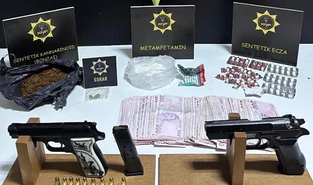 İl Emniyet Müdürlüğü Narkotik Suçlarla Mücadele Şube Müdürlüğü ekipleri uyuşturucu madde bulunduğunu belirlediği bir evde arama yaptı. Aramada, 89,34 gram metamfetamin, 0,89 gram esrar, 77,17 bonzai, 71 sentetik ecza, ruhsatsız tabanca, 9 tabanca fişeği, kurusıkı tabanca, suçtan elde edildiği değerlendirilen 67 bin 600 lira ele geçirildi. Gözaltına alınan K.K., sevk edildiği adliyede çıkarıldığı mahkemede tutuklandı.