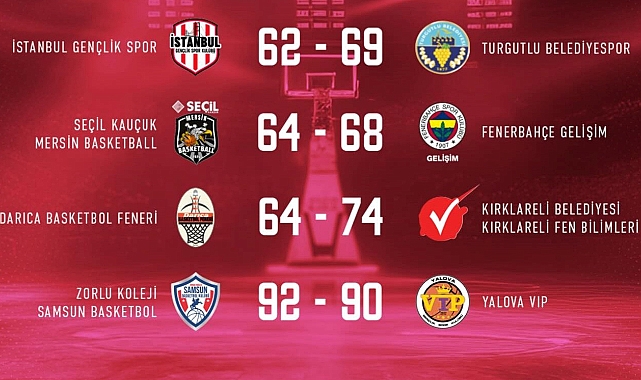 Paylaşılan görselde yer alan Halkbank Türkiye Kadınlar Basketbol Ligi 19. hafta sonuçları, haftanın ne kadar çekişmeli geçtiğini gözler önüne serdi. İstanbul Gençlik Spor’un Turgutlu Belediyespor’a 69-62 mağlup olduğu haftada, Fenerbahçe Gelişim ve Yalova VIP gibi güçlü ekipler de parkede zorlu sınavlar verdi.