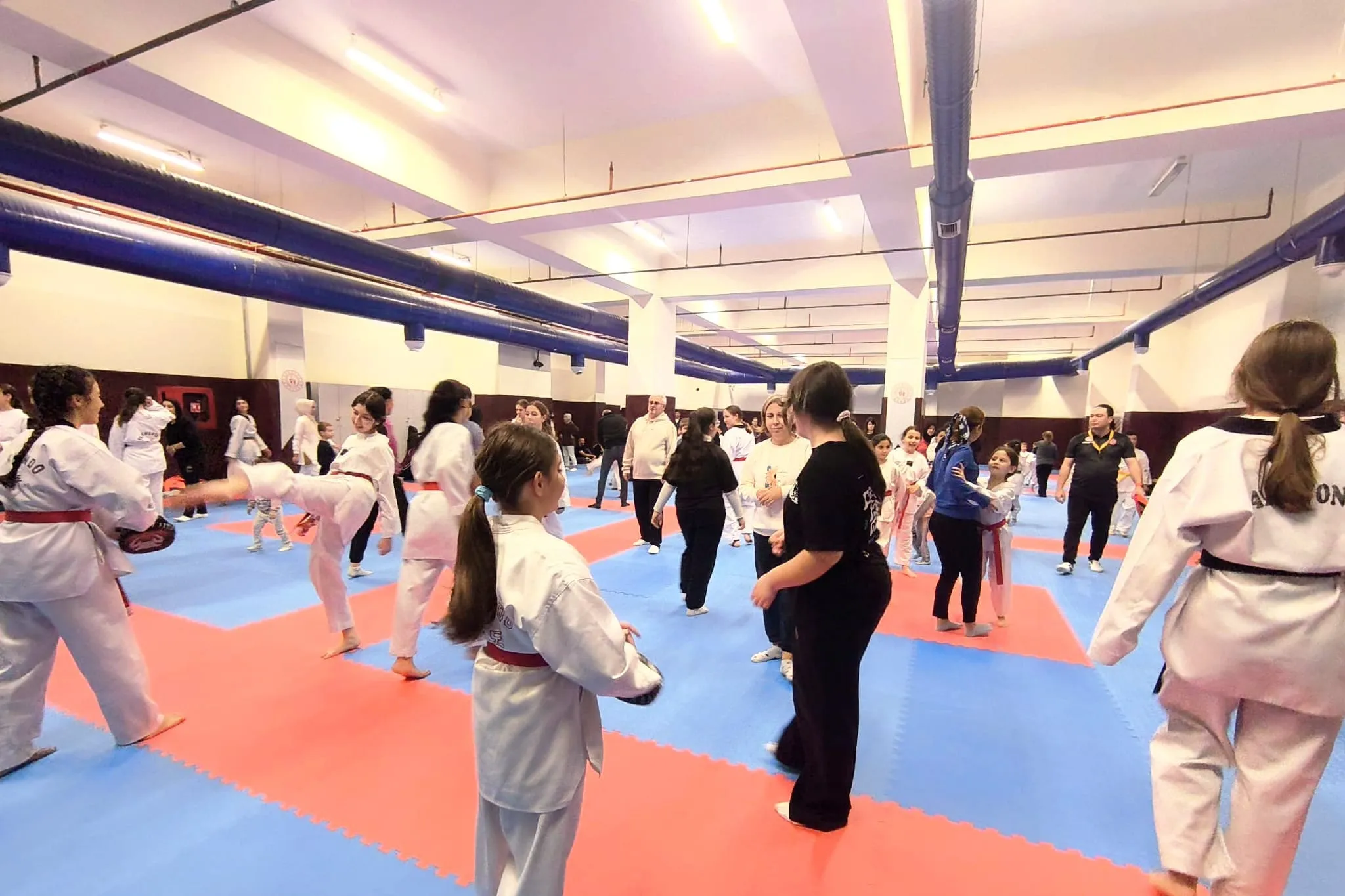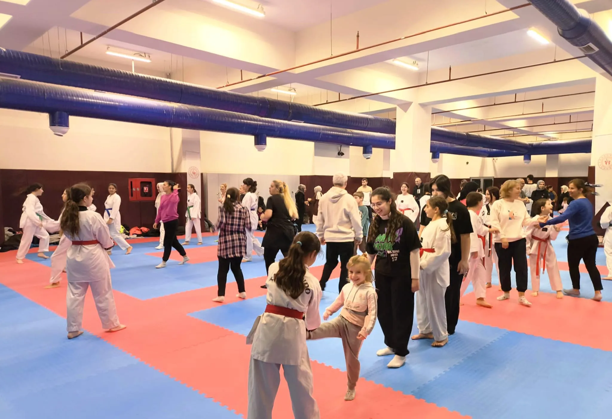 Program kapsamında temel taekwondo teknikleri, koordinasyon egzersizleri, ısınma oyunları ve esneme hareketleri uygulandı. Hem eğlenceli hem de öğretici aktiviteler, ailelerin birlikte spor yapmasının oluşturduğu pozitif atmosferi daha da güçlendirdi.