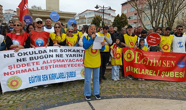 Kırklareli’de Eğitim Sen ve Eğitim-İş üyesi öğretmenler, okullarda artan şiddet olaylarına dikkat çekmek amacıyla Özgürlük Parkı’nda bir araya geldi. Kırklareli Öğretmenevi yanında bulunan parkta saat 11.00’de başlayan oturma eylemi, basın açıklamasıyla devam etti. Eyleme katılan öğretmenler, eğitimde güvenlik sorunlarının çözülmesini istedi.