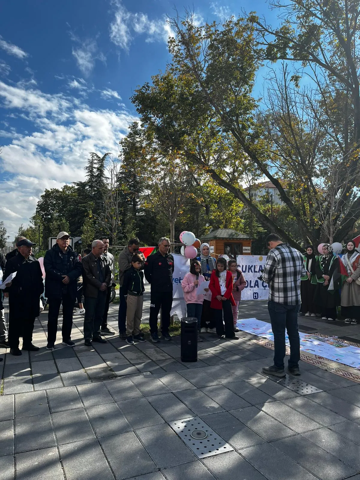 Etkinliğin sonunda okunan mesajda, barış ve adalet çağrısı yapıldı. “Biz küçük çocuklarız ama biliyoruz ki zulme sessiz kalmak da zulümdür. Dünya biraz daha güzel olsun istiyoruz. Savaşlar değil, oyunlar kazansın. Bombalar değil, kitaplar konuşsun,” sözleriyle çocuklar dünyaya güçlü bir barış çağrısında bulundu.